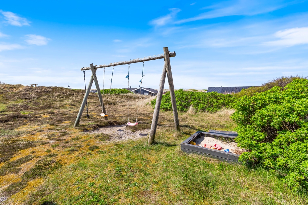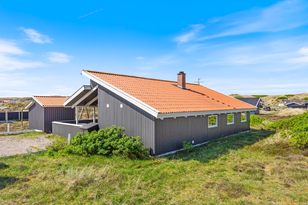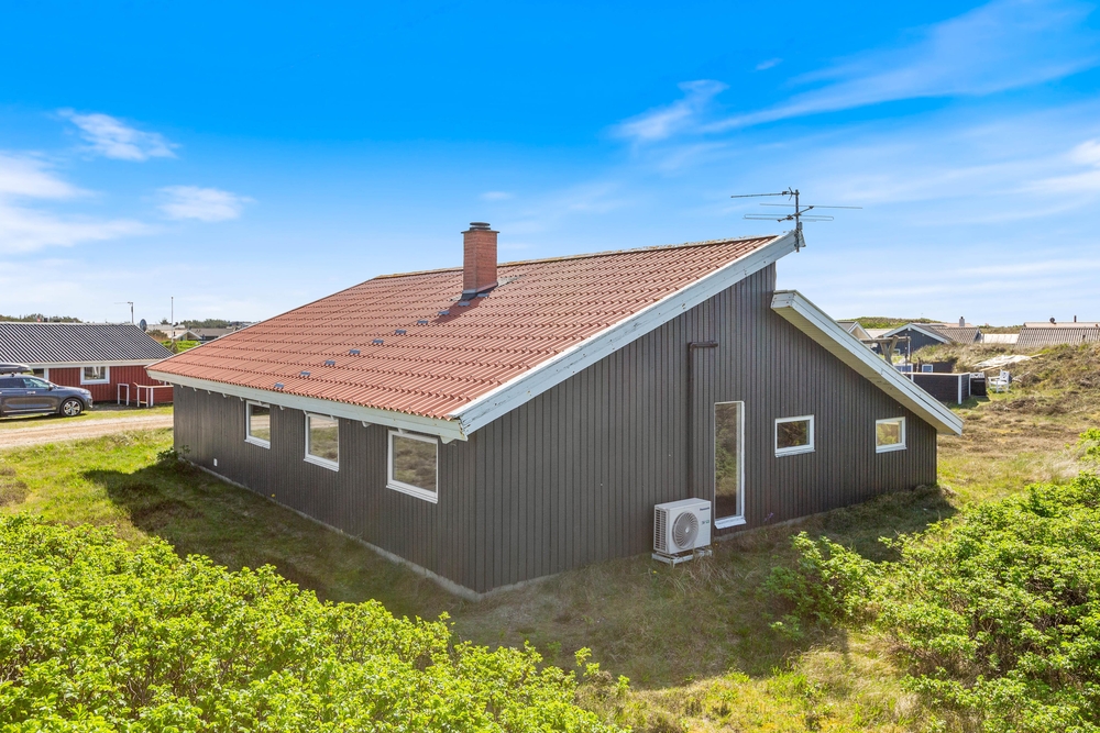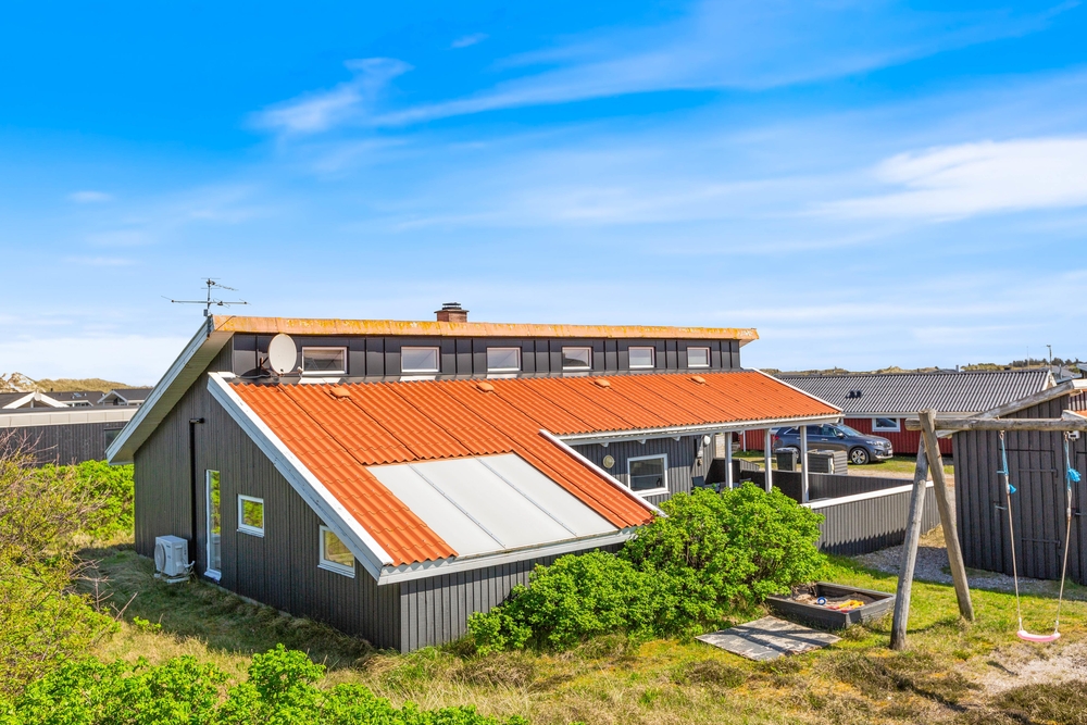 Det 99 kvadratmeter store feriehus på Bjerregårdsvej 426 med perfekt beliggenhed byder rammerne til en afslappende familieferie evt. med hund. På den lukkede terrasse kan I slappe af og samtidig holde øje med børnene, mens de gynger. Også på stranden små 250 meter herfra, kan I nyde mange gode time.