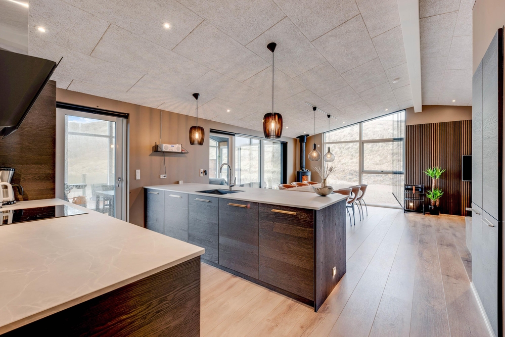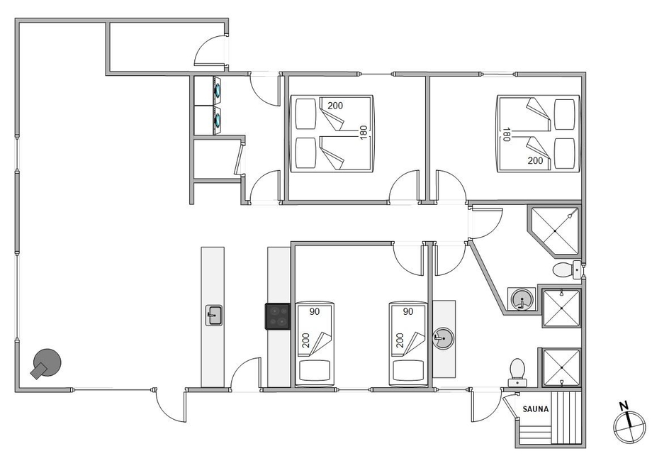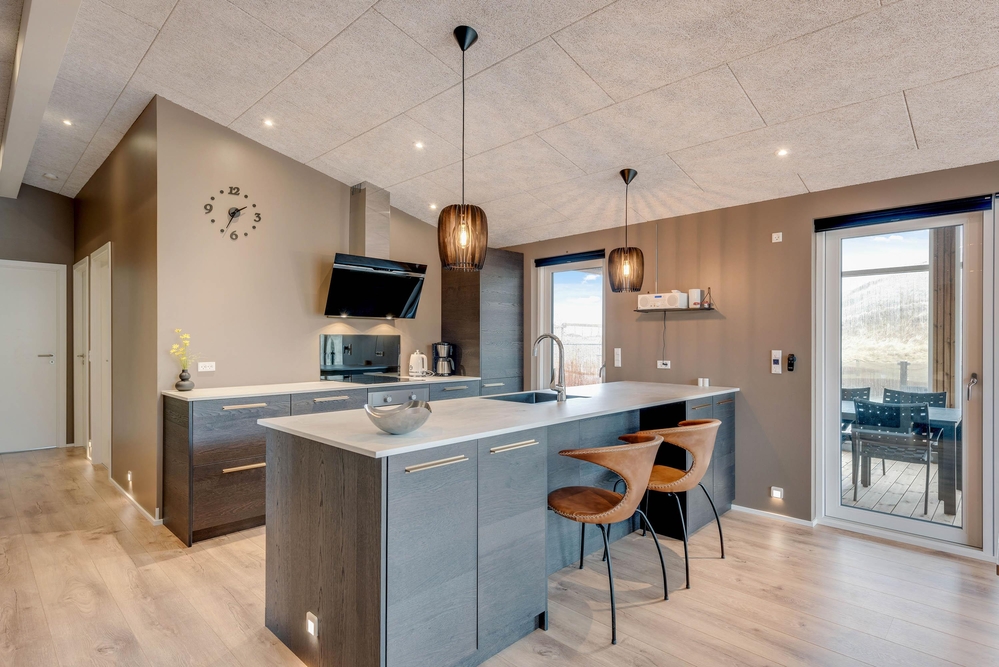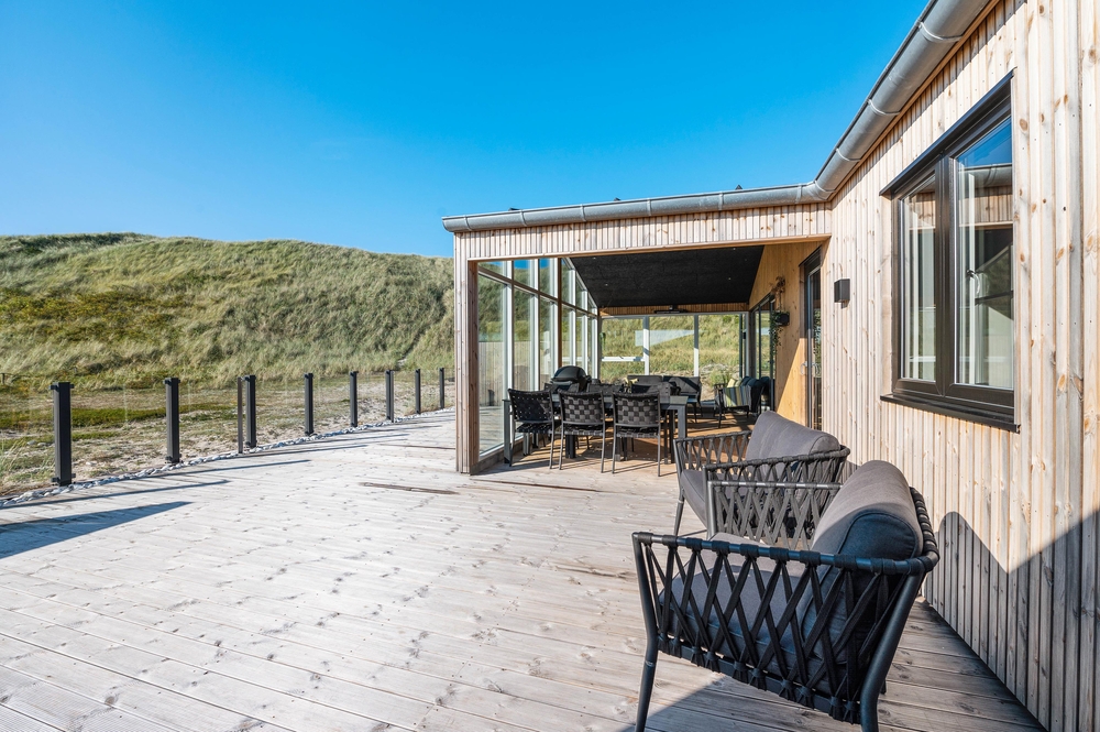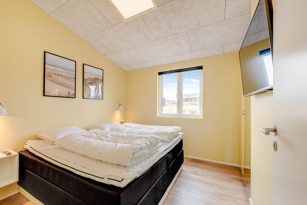 Det i 2021 byggede sommerhus er virkelig stilfuldt indrettet med gode kvalitetsmøbler, som I vil finde jer godt tilpas i under ferien. I alrummet, der kombinerer køkken, stue og spisestue, kan I samles til gode stunder omkring spisebordet eller i sofaerne foran tv?et. Brændeovnen, der står i alrummet, sætter prikken over i?et for sommerhusstemningen og bidrager med ekstra hygge.