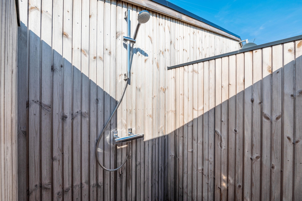 Der er intet som at komme ud og nyde de varme solskinsdage. På terrassen kan I finde jer til rette i liggestole og havemøbler. Alt imens kan børnene lege i haven, hvor de både kan bygge sandslotte i sandkassen og få sus i maven på gyngerne. Tager I en tur på stranden, kan I hurtigt skylle sandet af tæerne igen under udebruseren, som kan benyttes fra april til november.