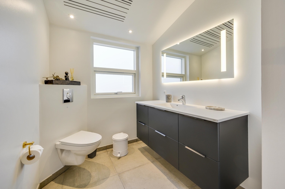 Sommerhuset, der er bygget i 2021, er lækkert indrettet i moderne stil med klinkegulv i både køkken, stue og i de 4 soveværelser ? alt sammen med gulvvarme, ligesom det er tilfældet på de 2 badeværelser.