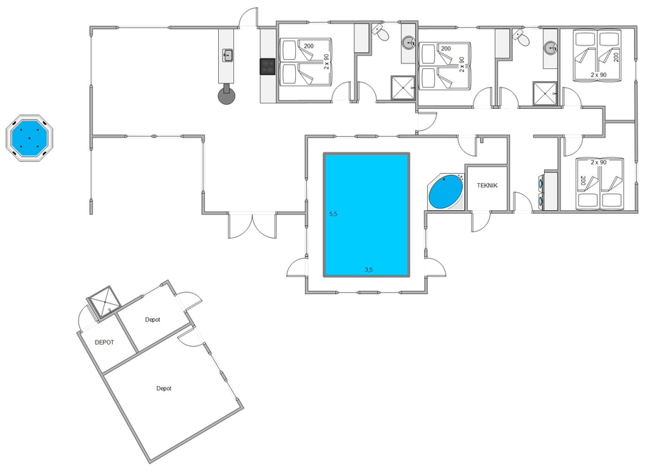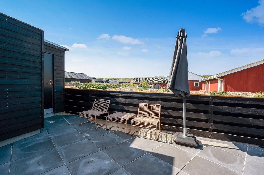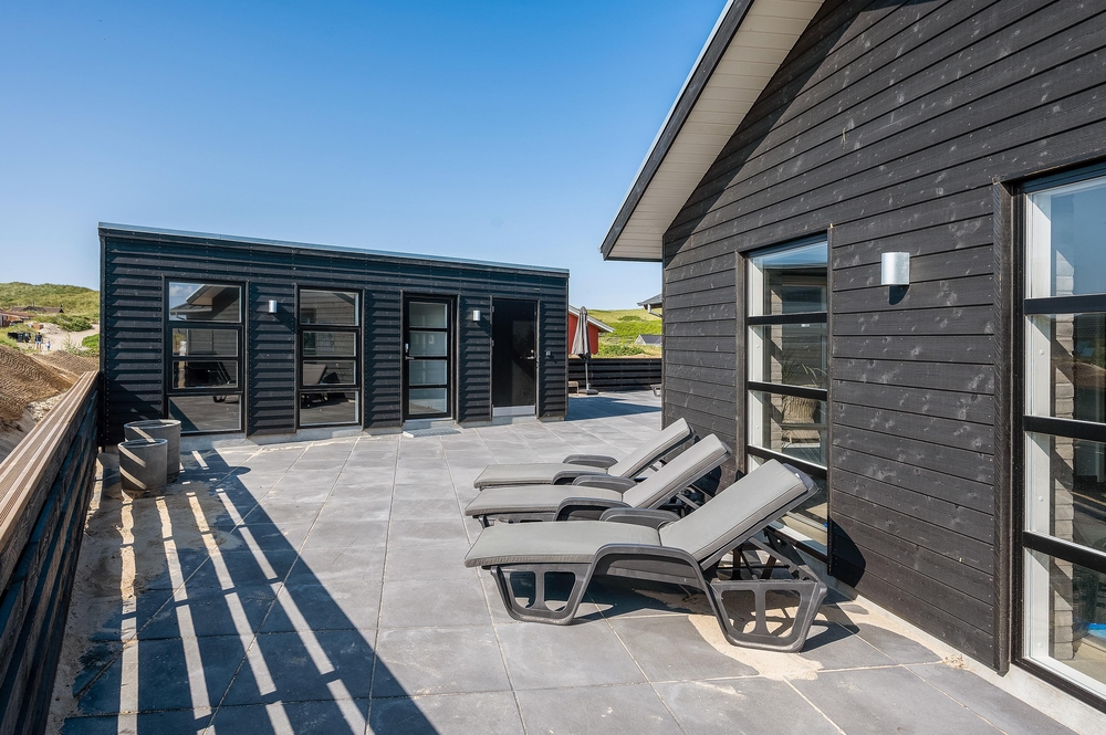 Midt i sommerhuset og med udgang til terrassen finder I det flotte poolområde, der ud over den 20 kvadratmeter store swimmingpool er indrettet med spabad til 2 personer. Med udsigt til klitterne kan I slappe af eller tage jer en dukkert året rundt, hvis I ikke vælger en tur i bølgen blå.