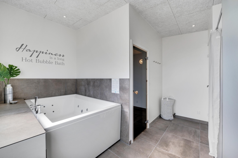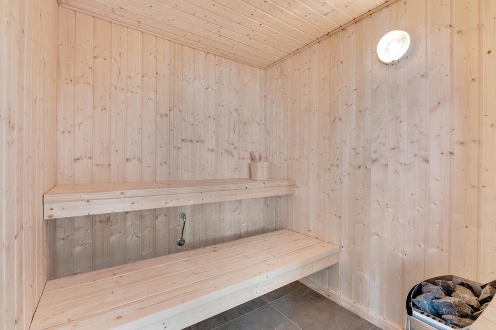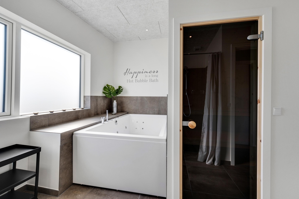 Når det er tid til at slappe af, skal I bare finde vej til det ene af sommerhusets 2 badeværelser ? her er nemlig et lækkert wellnessområde med spa og sauna, hvor I kan være helt sikre på at få en god gang afslapning og komme helt ned i gear.