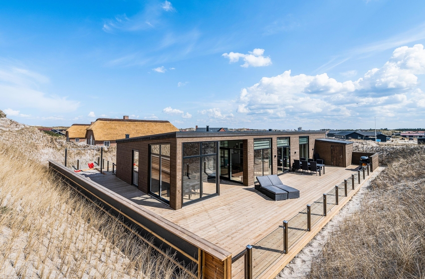 I første klitrække kun 50 meter fra det skønne Vesterhav på Bjerregårdsvej 478 ligger dette femstjernede sommerhus, der er bygget i 2021. Sommerhuset har med aktivitetsrum, spa, sauna, god udsigt og en fantastisk beliggenhed alt til en uforglemmelig ferie ved Vesterhavet. 6 personer kan nyde en lækker ferie i dette sommerhus ? og hunden er ligeledes velkommen.