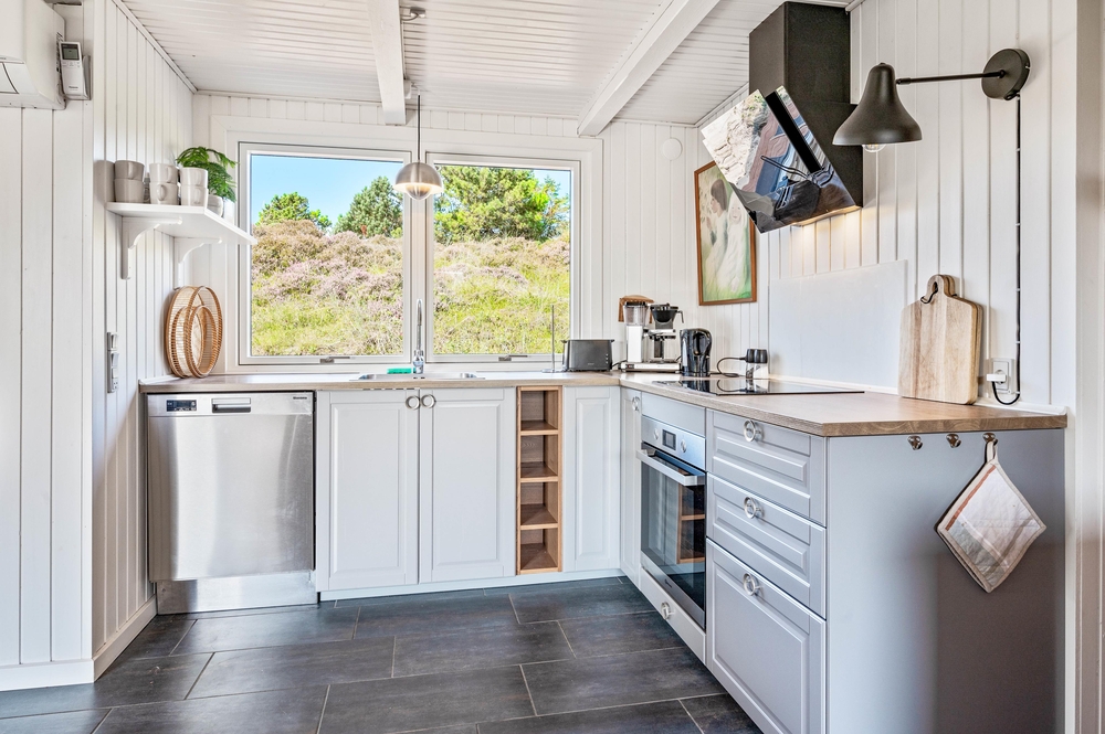 Bjørnedalen 27 i Grærup er et rigtigt flot feriehus, renoveret i 2020. Her er der kælet om detaljerne, så den rigtige feriehusstemning er bevaret. Dog har moderne facilitetter fundet vej, så I ikke behøver give afkald på den daglige luksus, som et moderne badeværelse med gulvvarme og et smart køkken med bl.a. opvaskemaskine kan give jer.