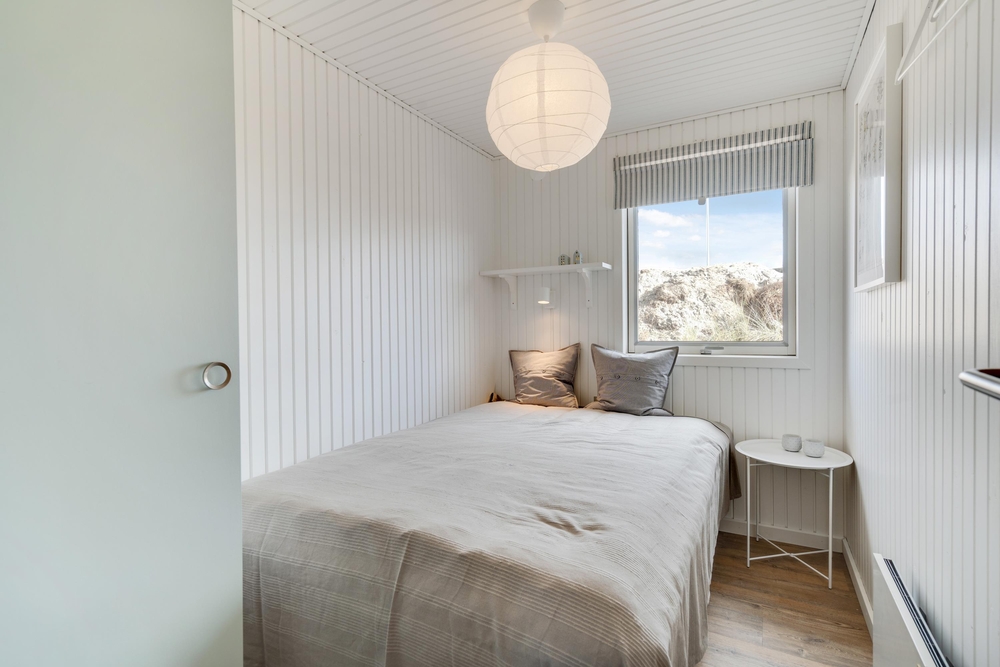 Hvor det dufter af lyng og hav, hvor lærken triller, og hvor der både er langt mellem husene og mellem badelagnerne på stranden, finder du dette skønne 4-stjernede sommerhus.