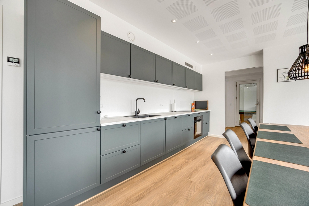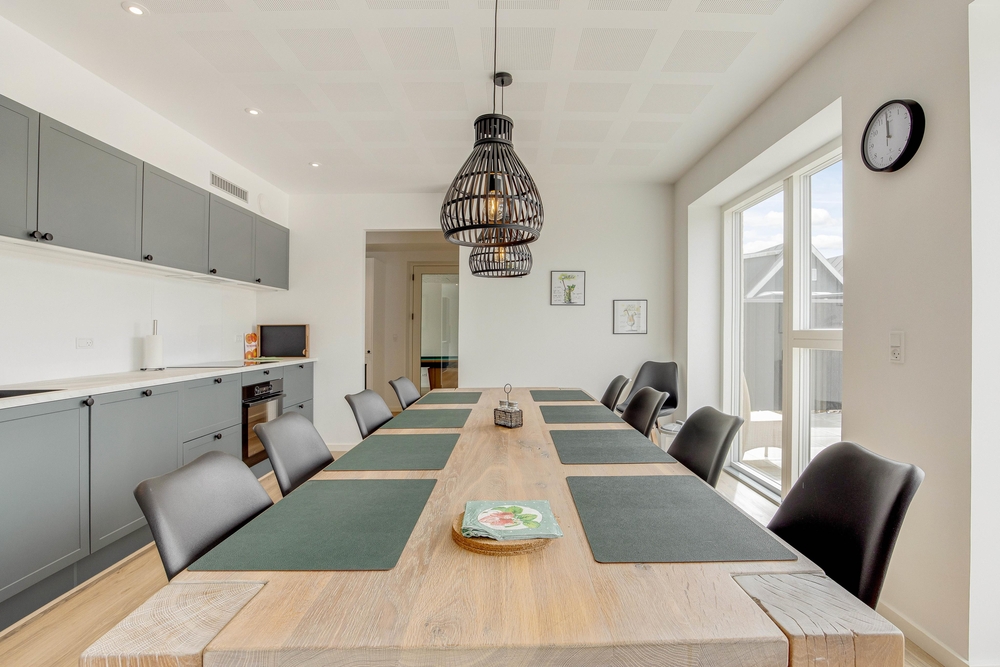 Til de mere rolige og hyggelige feriestunder kan I samle hele ferieflokken i alrummet, hvor stuen ligger i åben forbindelse med køkken og spiseplads. I alrummet kan I både samles til en god film foran tv?et, sjove spil omkring spisebordet og til madlavning i køkkenet.