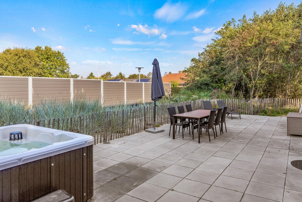 På terrassen venter jer også et af ferielejlighedens store højdepunkter: udespaen! I udespaen kan I blive forkælet med masser af afslapning i det varme, boblende vand under åben himmel. I bør også prøve en tur i udespaen under aftenens stjernehimmel ? det er helt fantastisk!