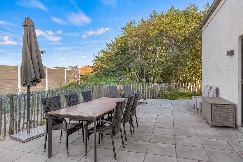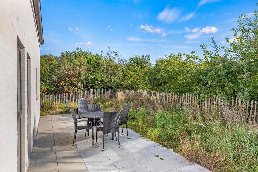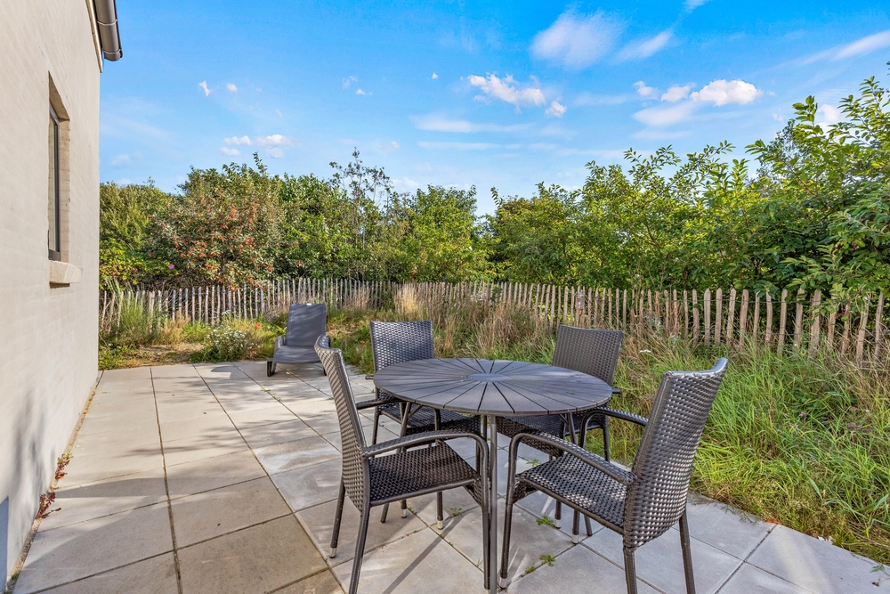 Udendørs venter jer et skønt udeområde, hvor I virkelig kan nyde de varme og solrige feriedage. Her har I en terrasse, hvor I kan sætte jer til rette i havemøbler og liggestole, mens I nyder solens varme stråler. På terrassen kan I også sagtens have jeres hund med, da terrassen er afskærmet og lukket.