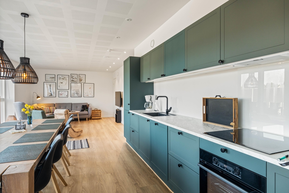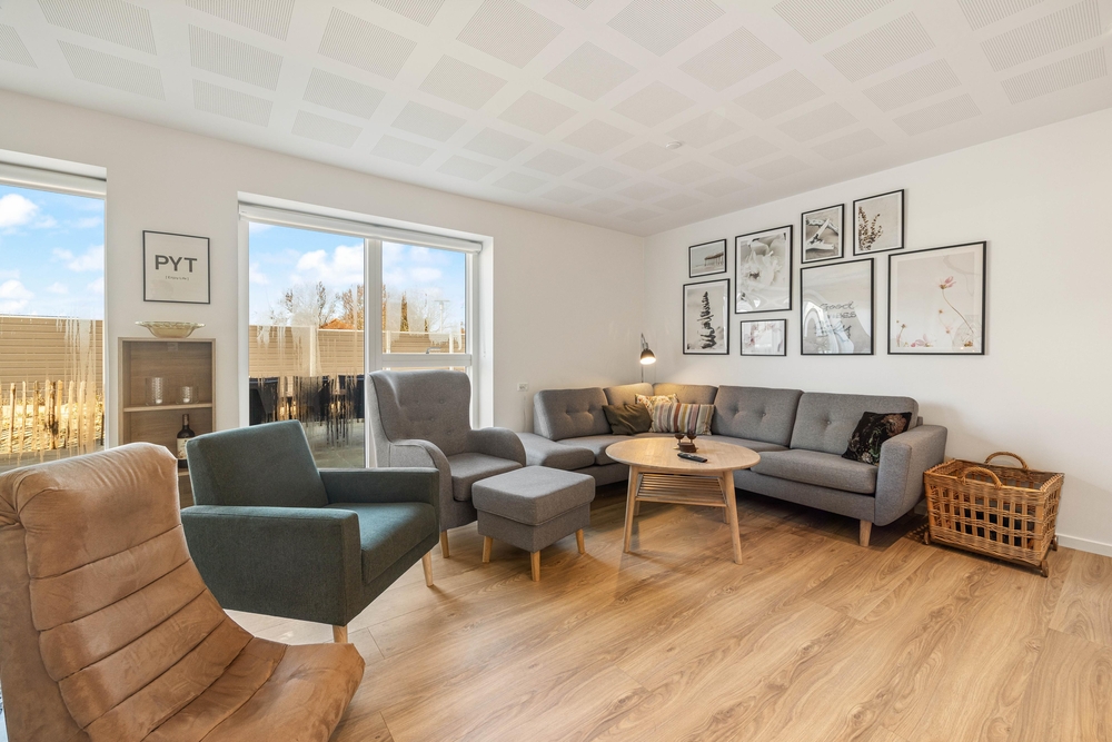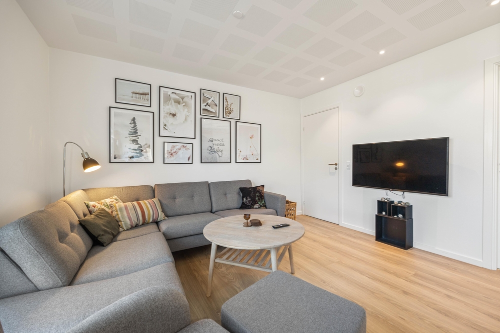 Indendørs i ferielejligheden vil I opleve en moderne og lys indretning, der sammen med det gode lysindfald er med til at skabe den rette ferieatmosfære ? der er ingen tvivl om, at I vil føle jer godt tilpas her!
