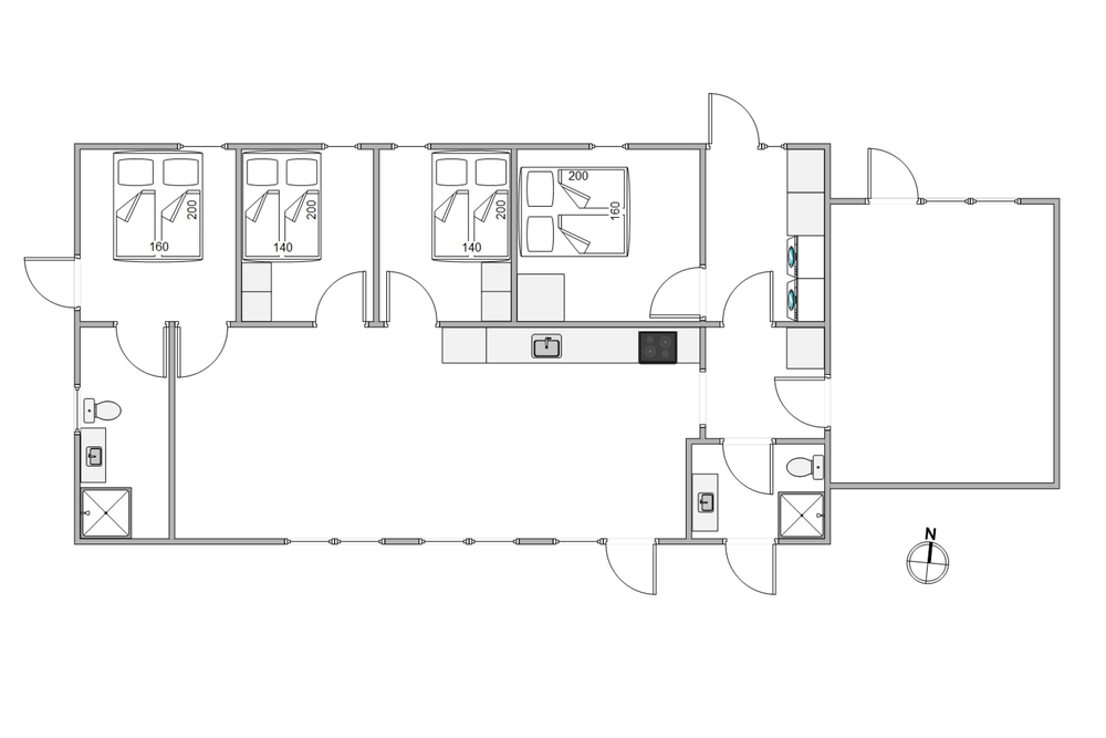 I denne 143 kvadratmeter store ferielejlighed venter jer 4 gode soveværelser, der alle er indrettet med dobbeltsenge, hvor I kan samle ny energi til feriedagene i Blåvand. Næste morgen skal I ikke bekymre jer om kø til badeværelset, da I har 2 badeværelser i feriehuset. Både på badeværelserne, soveværelserne og i opholdsrummet har I gulvvarme, så I slipper for kolde fødder i løbet af ferien.