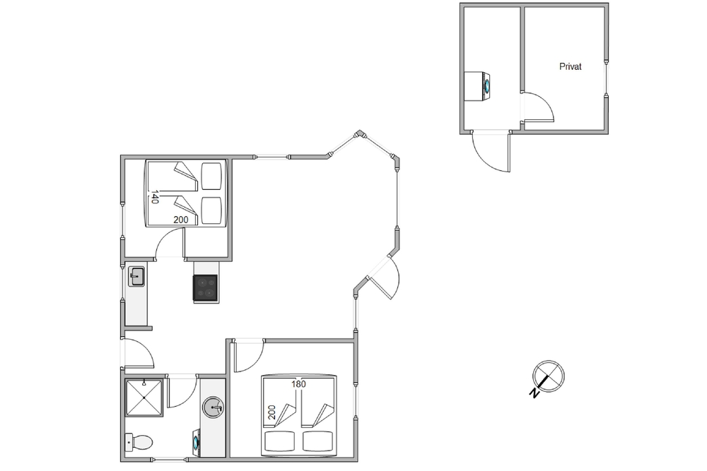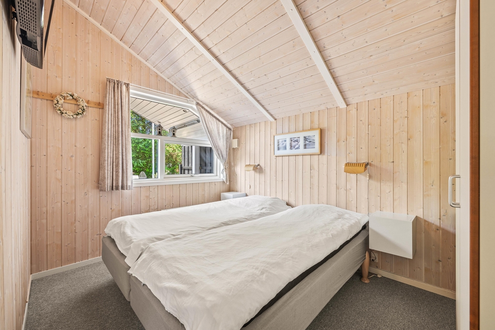 Sommerhuset, der blev bygget i 2003, er indrettet i en stil, det emmer af klassisk dansk sommerhus med 2 soverum, hvoraf det ene er udstyret med stor enkeltseng, og det andet soveværelse har dobbeltseng.