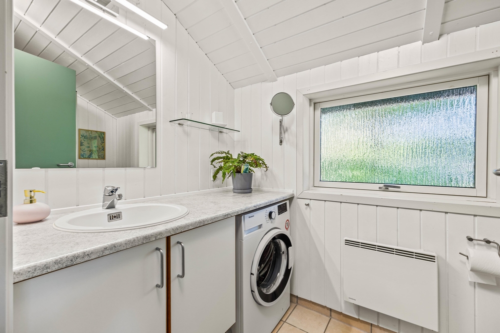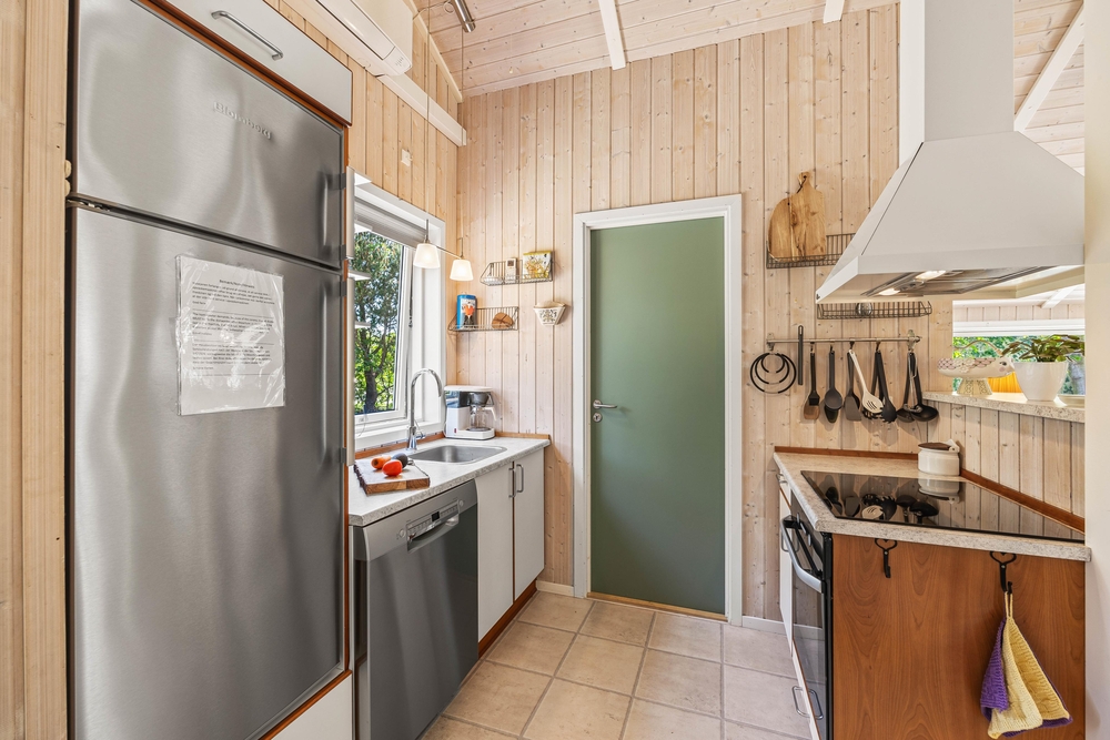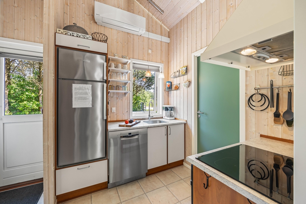 Opvasken klares nemt af opvaskemaskinen, mens tøjvasken hurtigt er overstået med feriehusets vaskemaskine og tørretumbler. Varmepumpen sørger for energivenlig opvarmning og godt indeklima, men på en kølig aften er der nu ikke noget bedre end at tænde op i brændeovnen og mærke varmen fra de knitrende flammer brede sig i stuen.