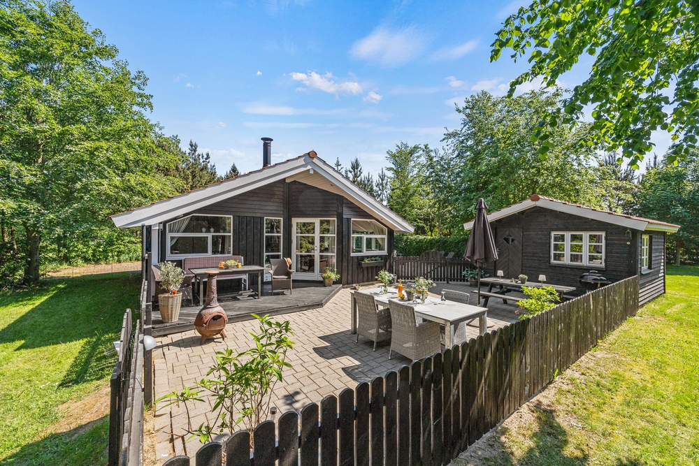 Den 1700 m2 store indhegnede grund er en blanding af både plæne- og naturgrund. Her er I omgivet af store træer, der sørger for læ og privatliv.
