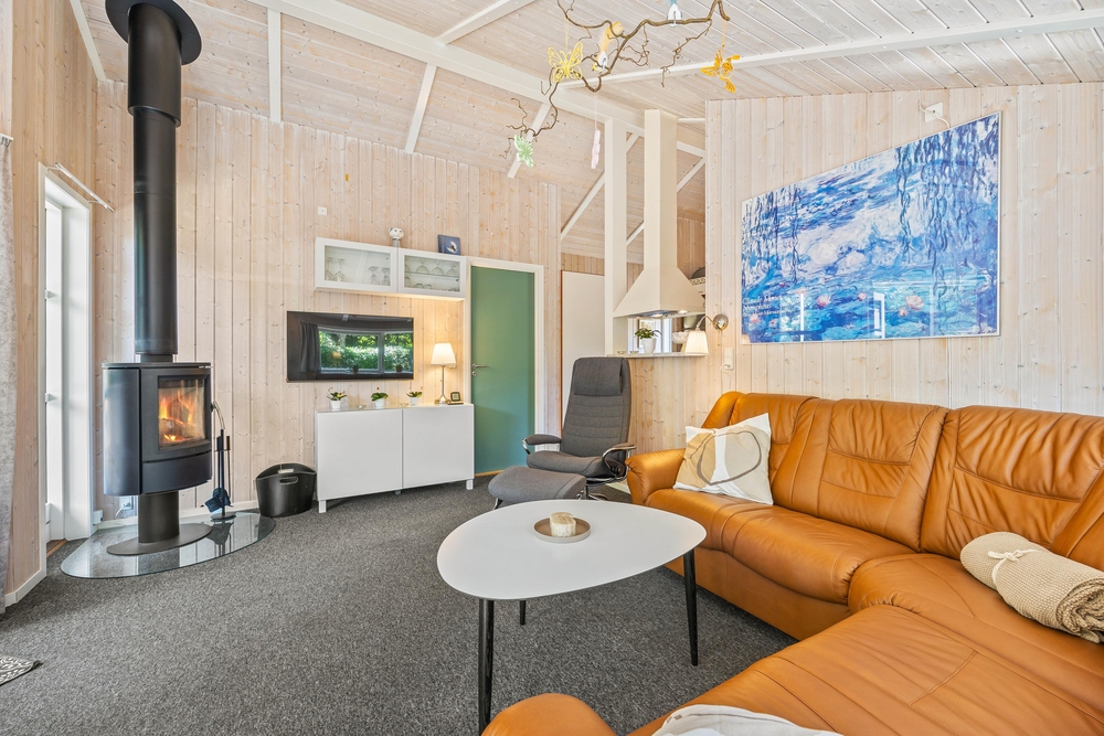 Den store sofa er det perfekte sted at slappe af efter en lang dag. Sommerhusets Chromecast gør det også nemt for jer at sætte jeres yndlingsfilm og -serier på fjernsynet.