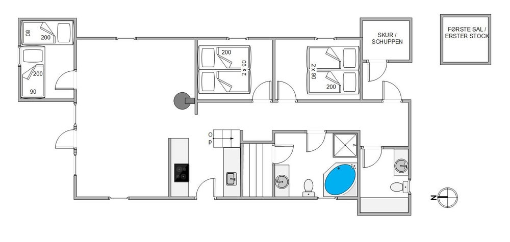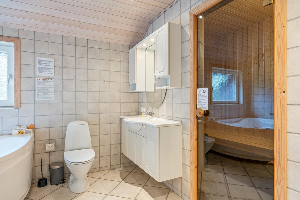 I det åbne og veludstyrede køkken kan I let tilberede lækre måltider, som opvaskemaskine klare oprydningen efter. Badeværelset er mere end blot et praktisk rum; det er også jeres helt egen lille wellness-oase, komplet med en sauna og en tømmespa, hvor I kan koble af og forkæle jer selv efter en oplevelsesrig dag.