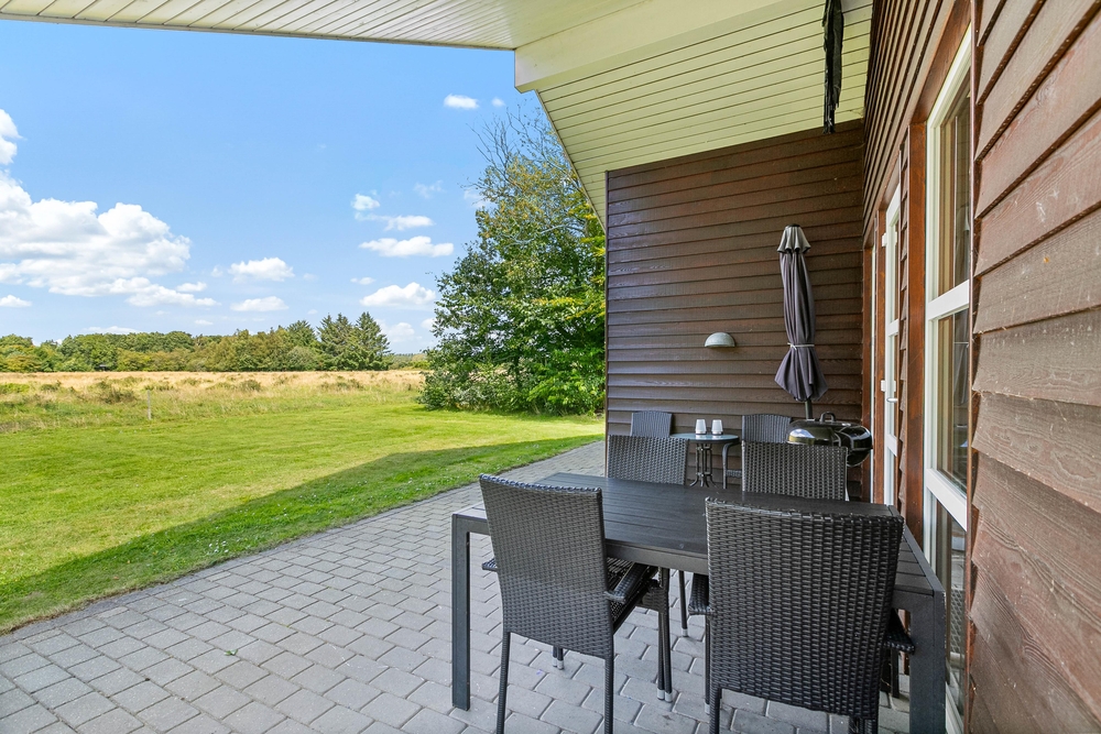 Den åbne terrasse er et perfekt sted at nyde solens varme stråler, mens I nyder en kop kaffe om morgenen eller tilbereder lækre måltider på grillen. Har I brug for skygge eller læ, kan I rykke ind under den overdækkede terrasse, hvor I stadig kan nyde den friske luft og udsigten til den omkringliggende natur, også selvom vejret ikke viser sig fra sin bedste side.