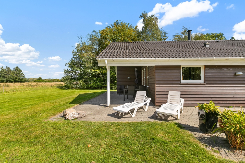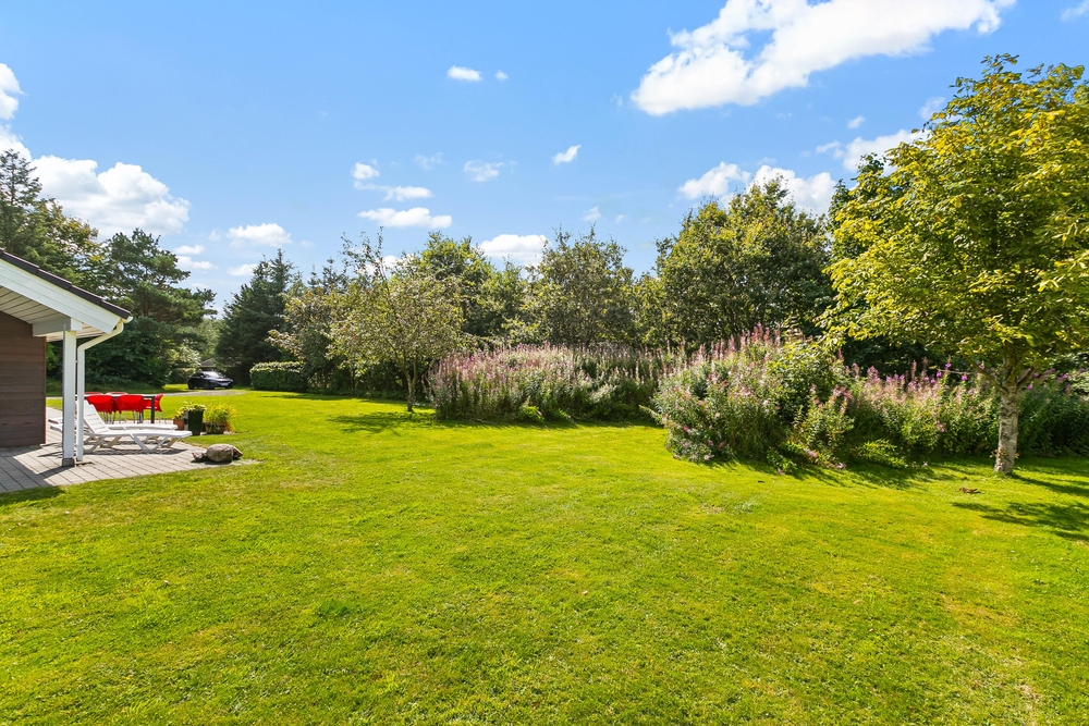 Udenfor venter en skøn oplevelse på jer, hvor naturen og komfort går hånd i hånd. Sommerhuset er omgivet af et vidtstrakt udeareal på hele 1716 kvadratmeter, som giver jer masser af plads til at nyde livet under åben himmel. Plænegrunden inviterer til mange timers leg, boldspil eller måske bare en stille stund i en liggestol med en god bog.