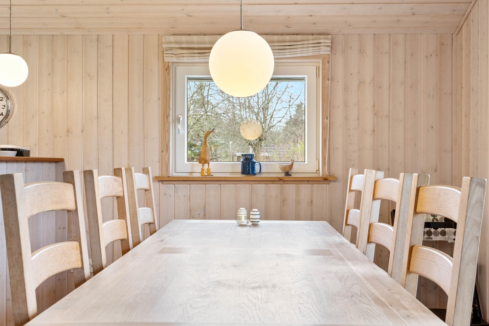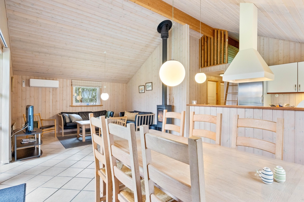 Praktiske behov er også tænkt ind i huset, da der både er vaskemaskine og tørretumbler, så I let kan klare tøjvasken uden besvær. Når aftenen falder på og temperaturen daler, kan I glæde jer til at tænde op i den hyggelige brændeovn, som ikke kun varmer stuen op, men også skaber den helt rette stemning for en afslappet aften med familie og venner.