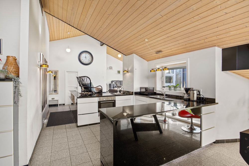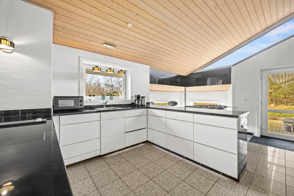 Sommerhuset indeholder også andre goder såsom tørretumbler, vaskemaskine og opvaskemaskine, som alle bidrager til en mere afslappende ferie og gulvvarmen, som strækker sig igennem hele sommerhuset, sørger for, at I altid kan holde varmen, uanset hvilken årstid I besøger.