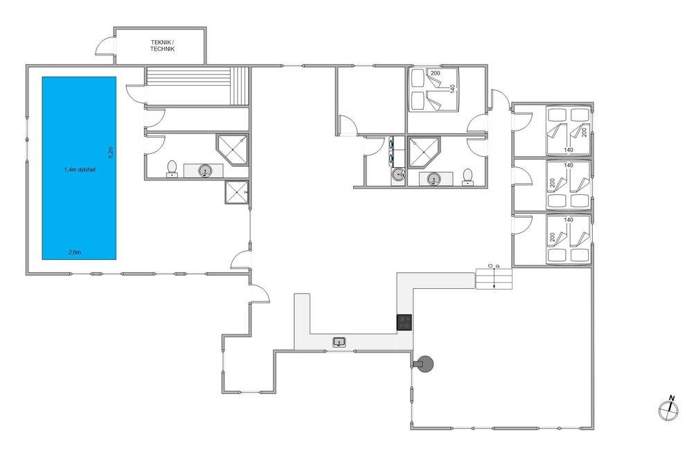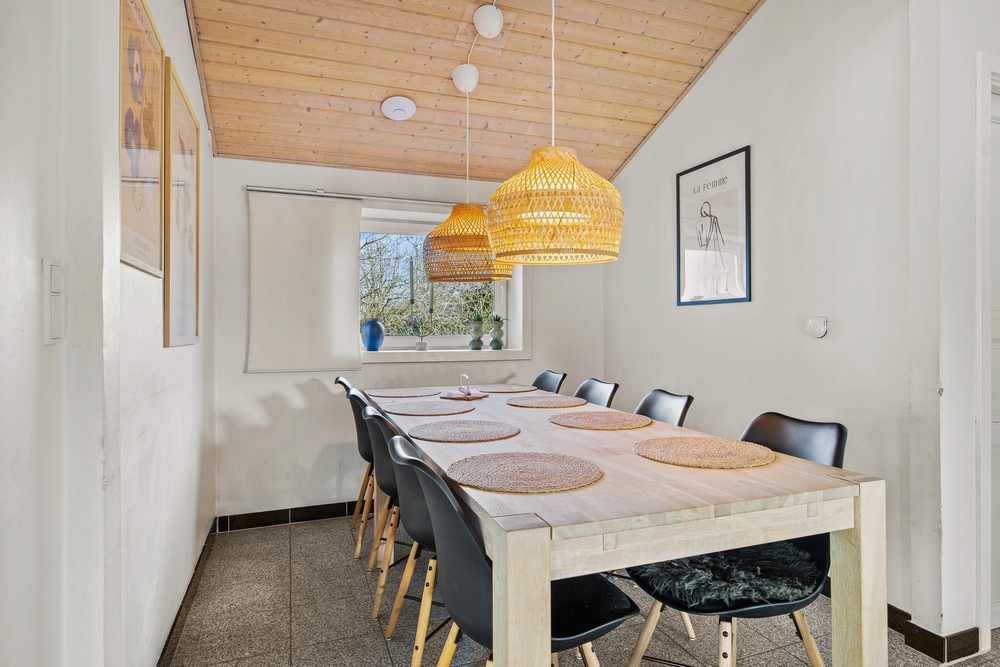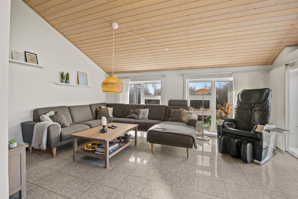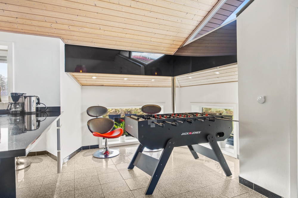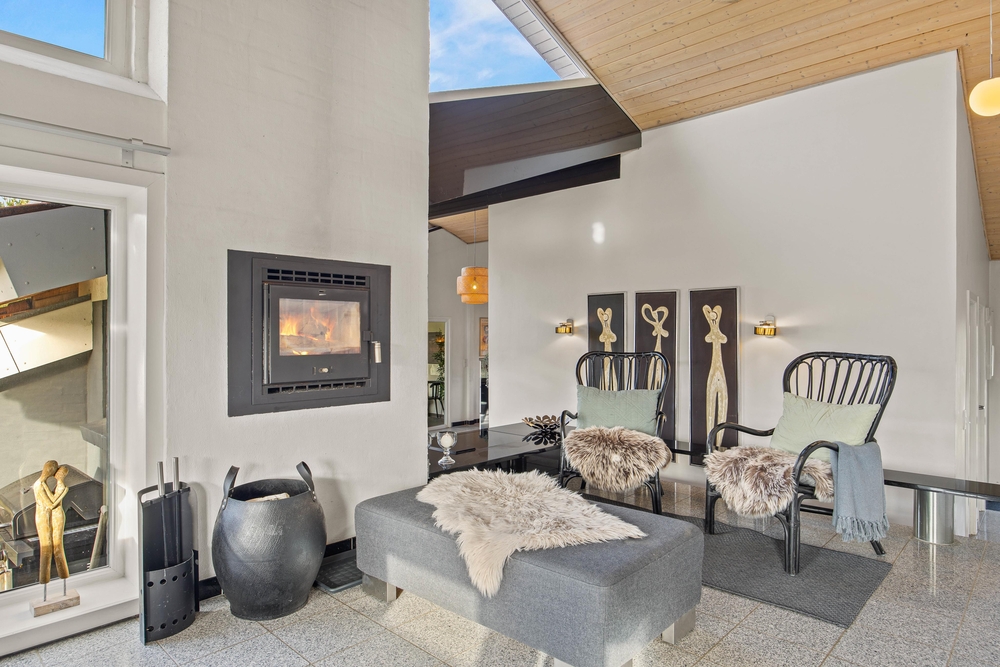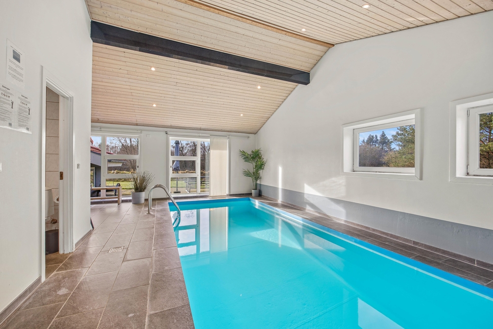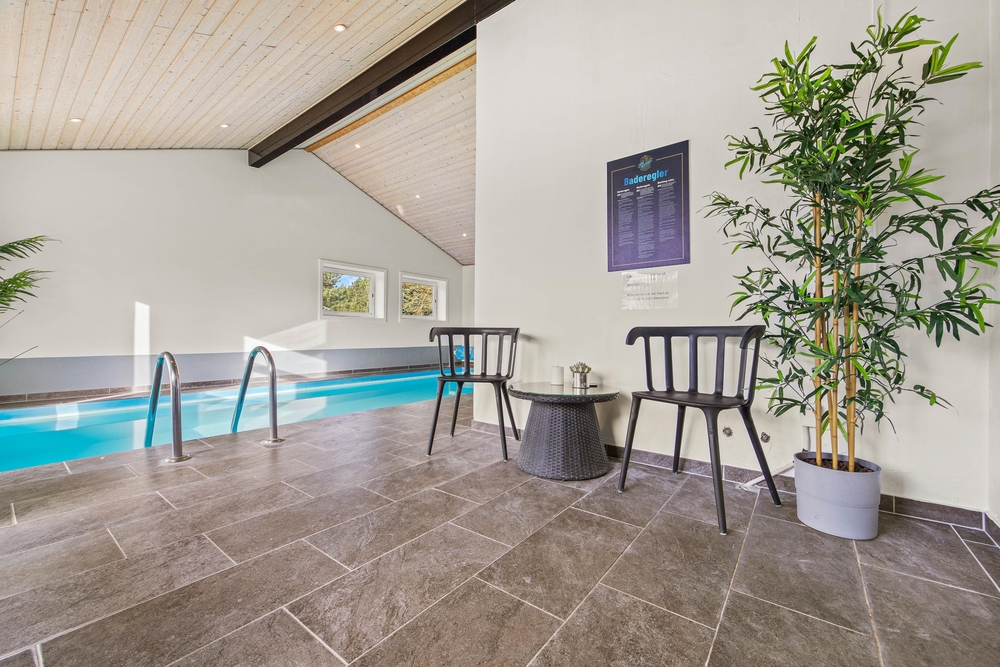 Bevæger man sig videre ind i de bløde sofamøbler, omfavnes man af den varme brændeovn der især på kølige aftener indbyder til hygge over en kop varm kakao og et spil kort. I har også mulighed for at forkæle jer selv i husets sauna efter en dag fuld af oplevelser. Hvis I trænger til at få pulsen op, kan I tage en forfriskende svømmetur i den indendørs pool, der virkelig sætter prikken over i?et i jeres ferieoplevelse, eller tage et spil billard i det store aktivitetsrum. Poolen opvarmes af en luft til vand varmepump, som både sikrer en lækker temperatur på 28-30 grader og er energivenlig så I sparer penge.