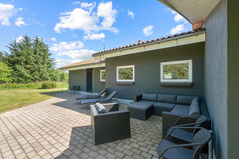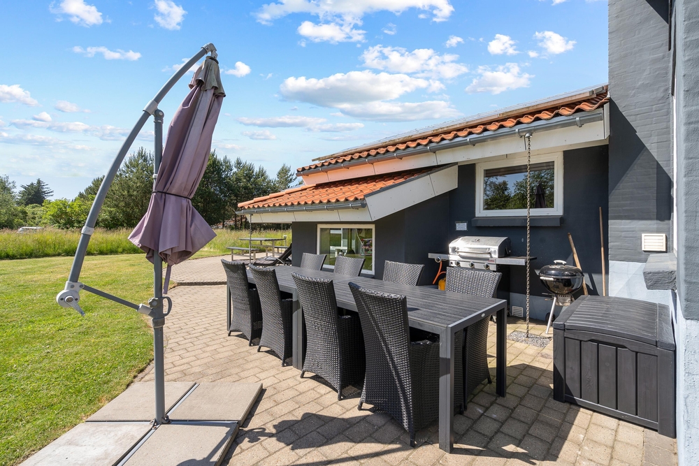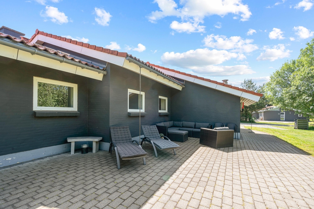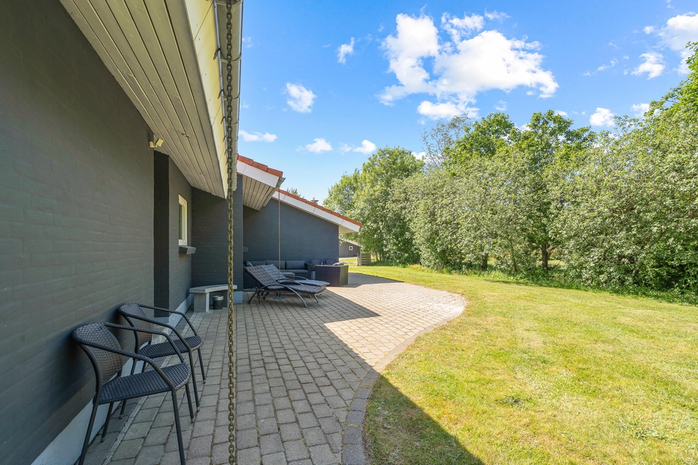 Udenfor vil I finde en velplejet plænegrund på 1801 kvadratmeter, hvor hele familien kan nyde udendørslivet. Der er både en kulgrill og en gasgrill til jeres rådighed, så I kan tilberede lækre måltider udendørs, mens I nyder det danske sommervejr.