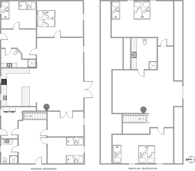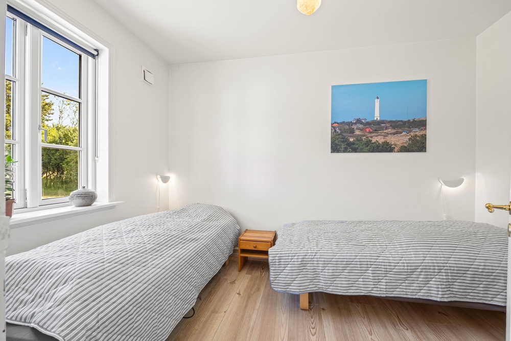 Sommerhusets 240 m² er fordelt på 2 plan, hvoraf de 2 af værelserne, ét af badeværelserne samt den rummelige opholdsstue er placeret på 1. salen. I stuen er der brændeovn, så I kan samles til hyggelige stunder foran flammerne, mens I nyder hinandens selskab. Måske med et spil kort eller en god film? I feriehuset er der danske tv-kanaler.