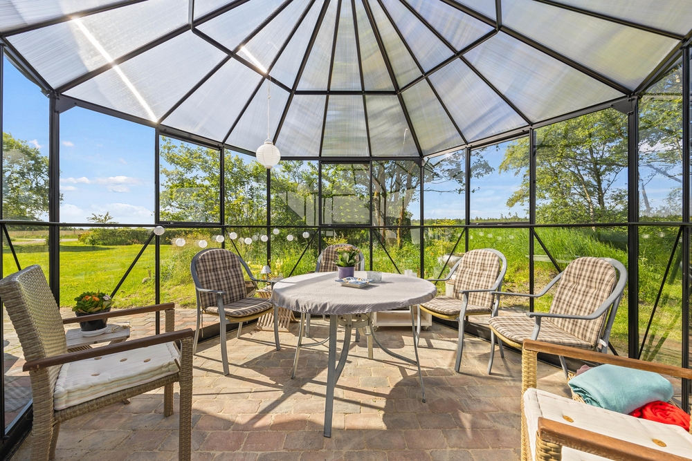 Den store plænegrund tilbyder aktiviteter for både store og små. For de yngste er der en gynge og en sandkasse til leg, mens resten af familien kan tilberede et lækkert måltid på grillen. Middagen kan I nyde sammen ved havemøblerne på den afskærmede terrasse med tilhørende orangeri.