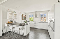 De resterende værelser, køkken og spisestue, et lille opholdsrum samt de 2 sidste badeværelser ligger i stueplan. Det moderne køkken er veludstyret, og her kan I samles om madlavningen, mens opvaskemaskinen efterfølgende klarer opvasken. I forlængelse af køkkenet ligger bryggerset, hvor I både finder vaskemaskine og tørretumbler. Desuden er der her god plads til opbevaring af sko og overtøj.