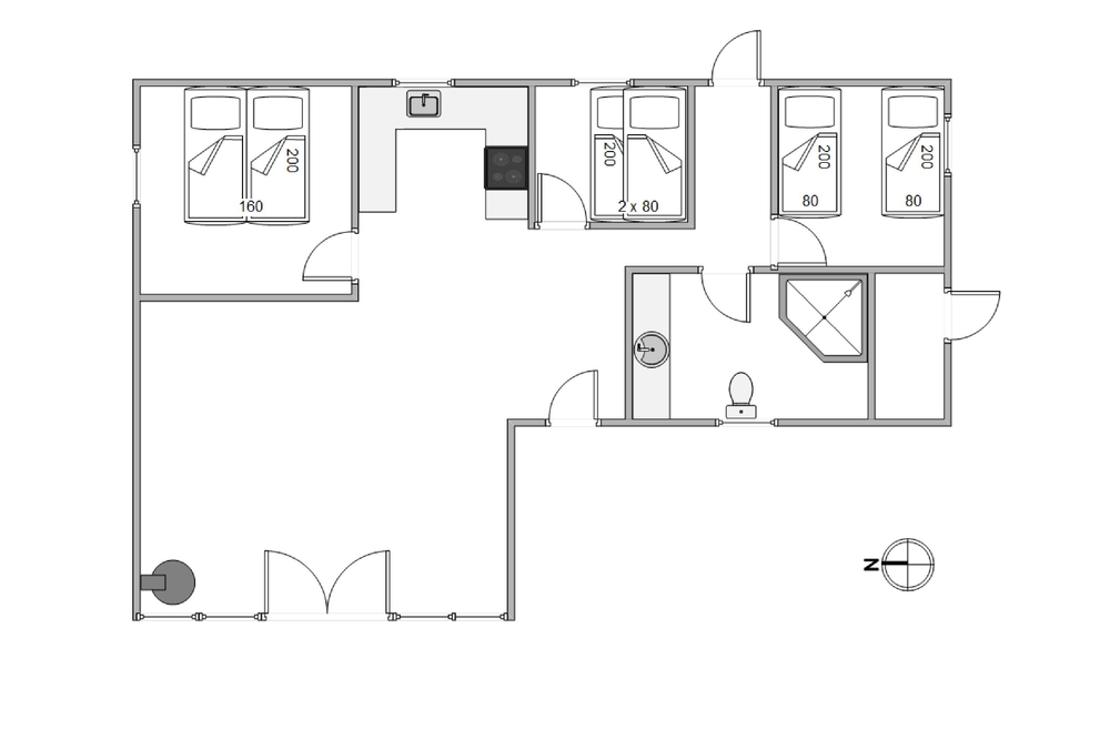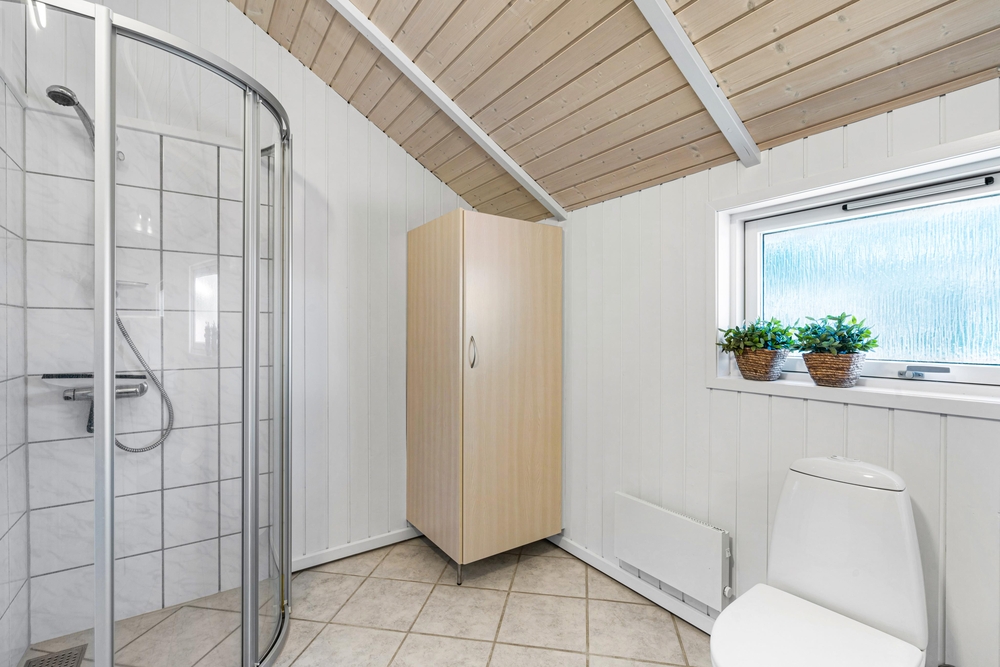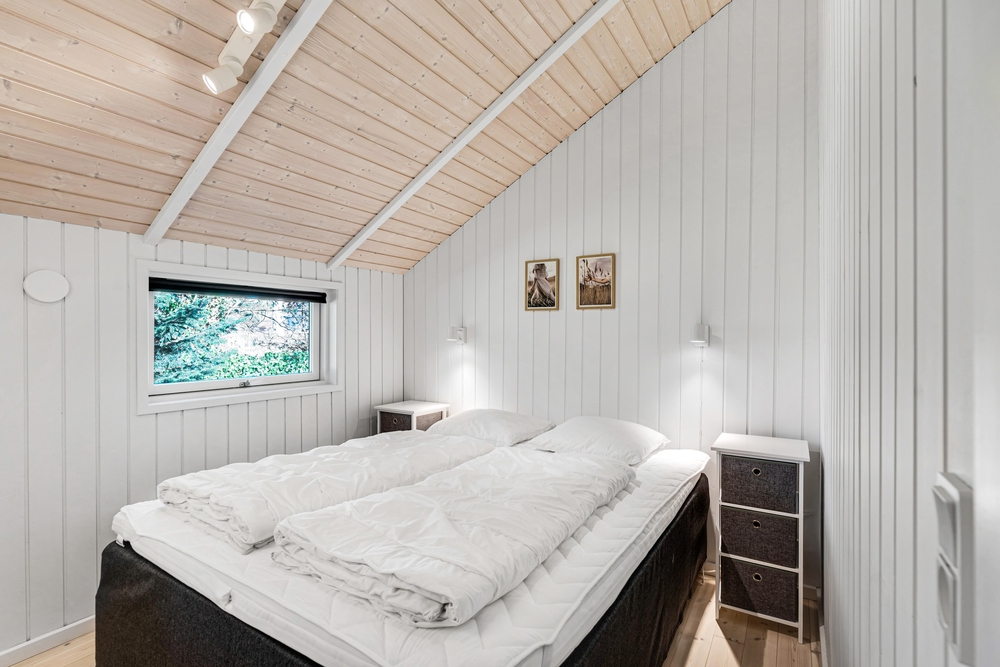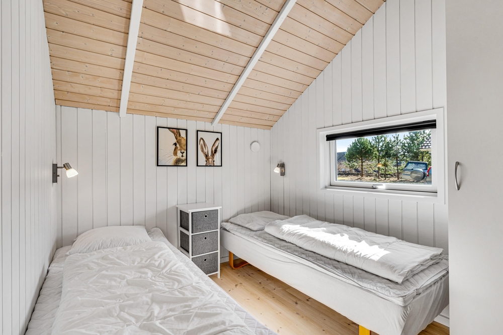 Sommerhuset byder på tre soverum, hvor der i det ene er en dobbeltseng, i det andet en køjeseng og i det tredje to enkeltsenge. Derudover bliver I også mødt af et lyst og indbydende badeværelse.