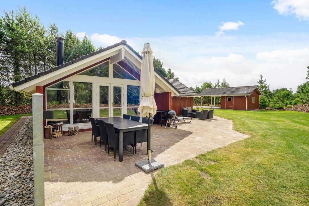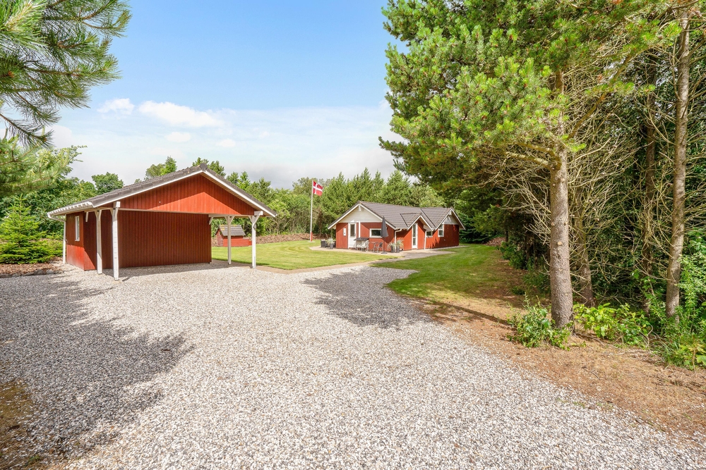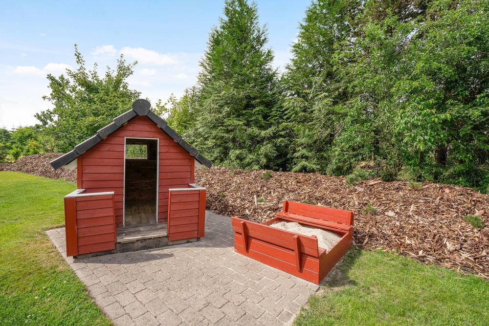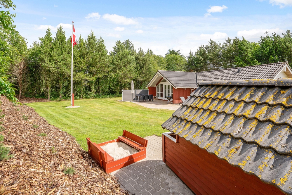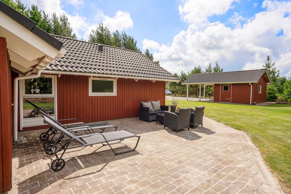 Tag maden med ud på terrassen, og nyd dage og aftener med grill i haven. I kan også ligge og dase på solsengen og bare nyde den danske sommer. Alt imens kan børnene lege i sandkassen, som også er ved terrassen. I kan parkere bilen i carporten, som ligger lige ved siden af feriehuset.