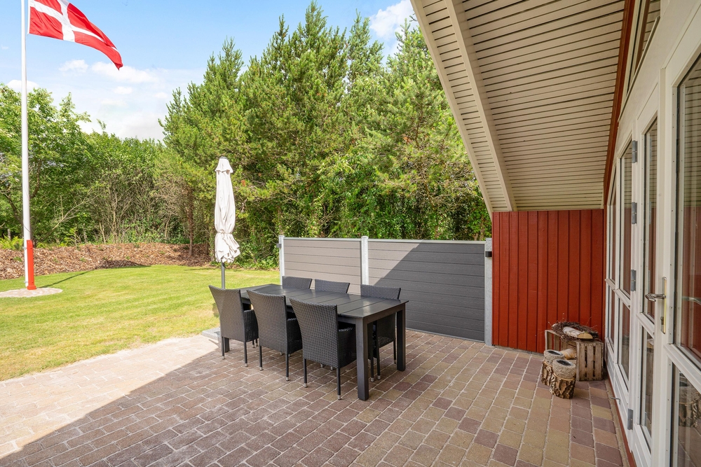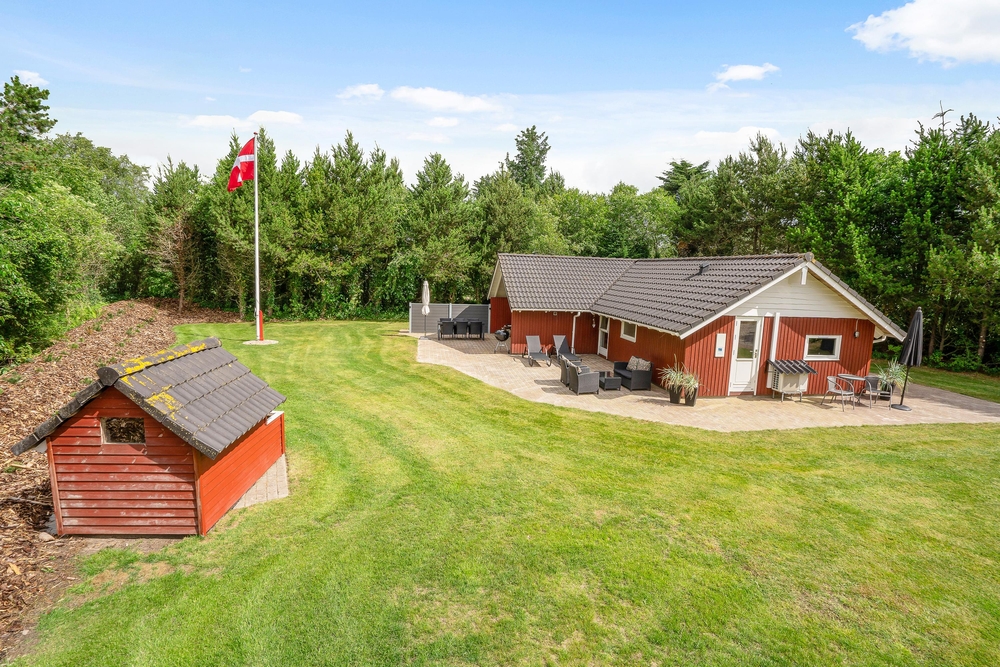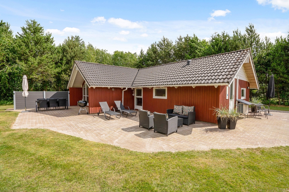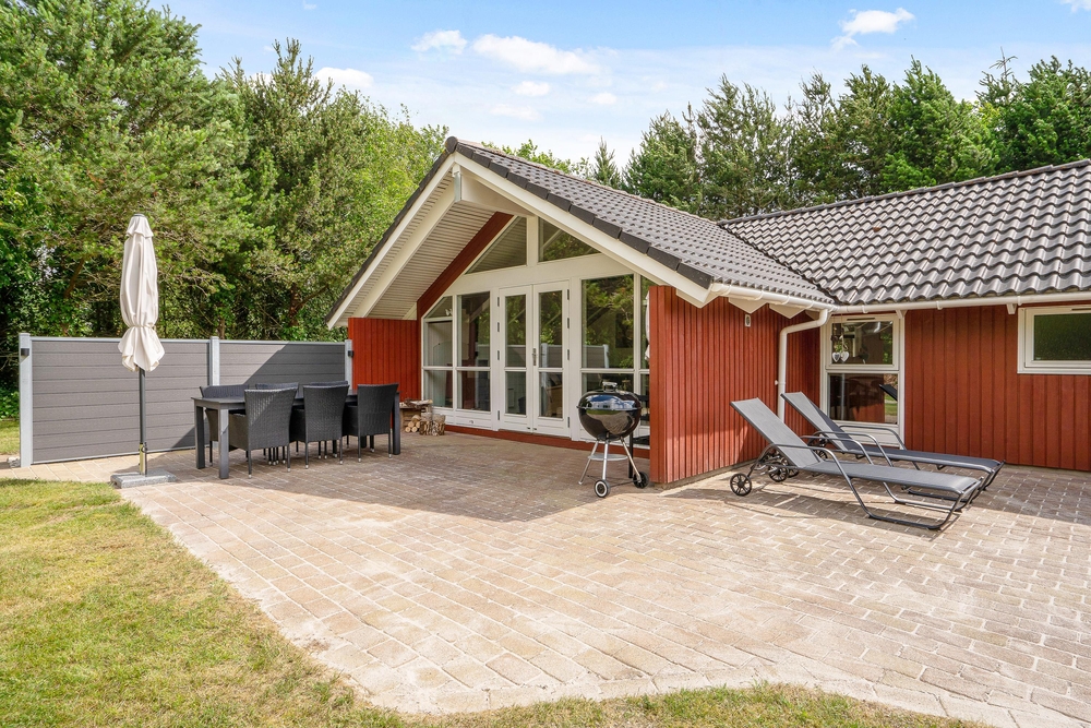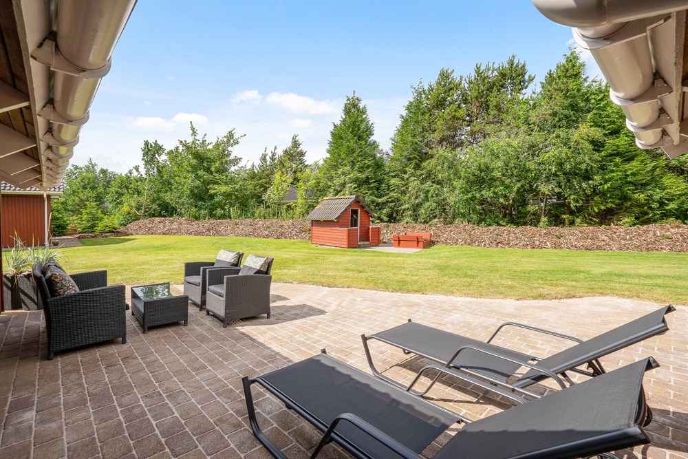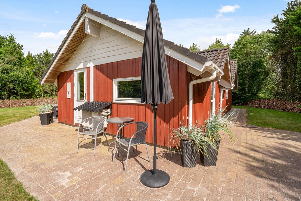 Tag maden med ud på terrassen, og nyd dage og aftener med grill i haven. I kan også ligge og dase på solsengen og bare nyde den danske sommer. Alt imens kan børnene lege i sandkassen, som også er ved terrassen. I kan parkere bilen i carporten, som ligger lige ved siden af feriehuset.
