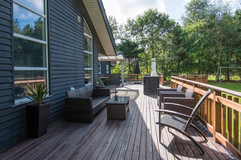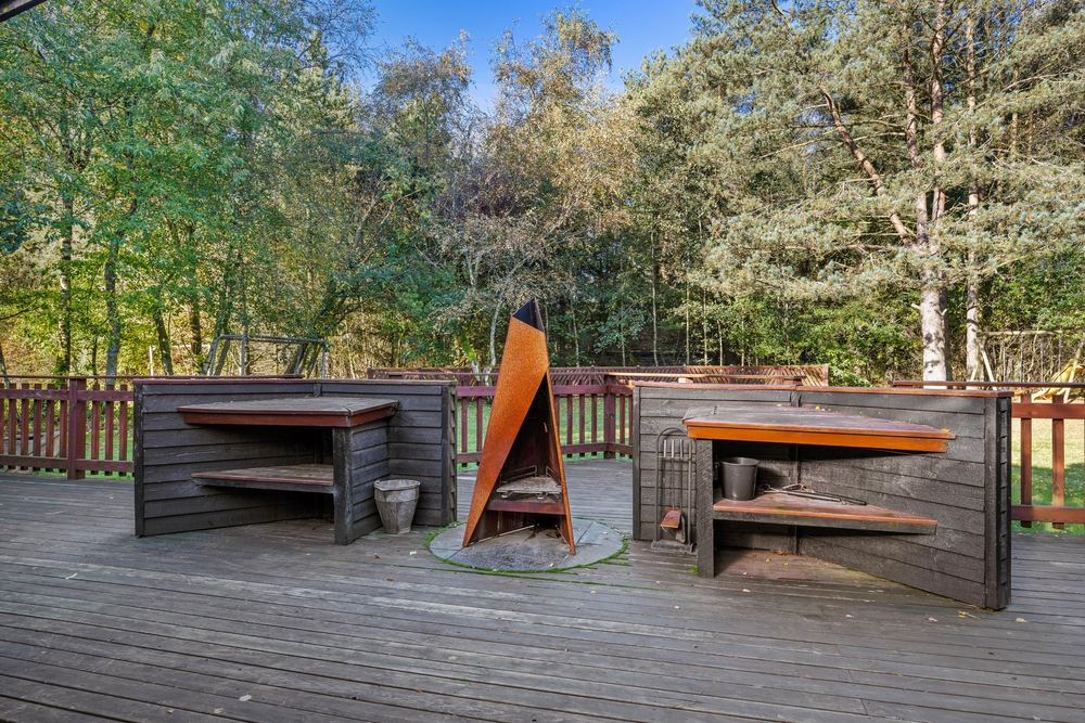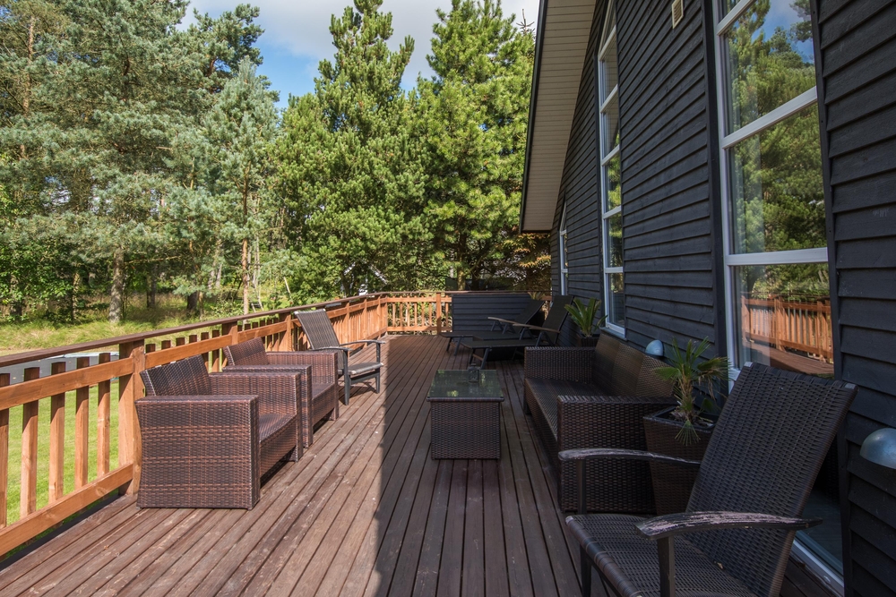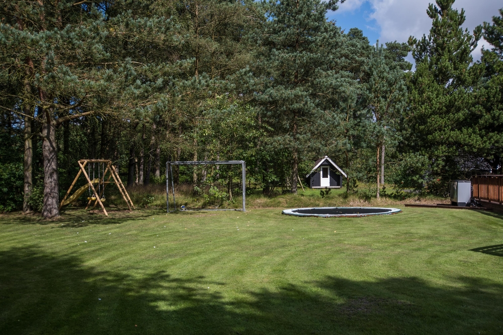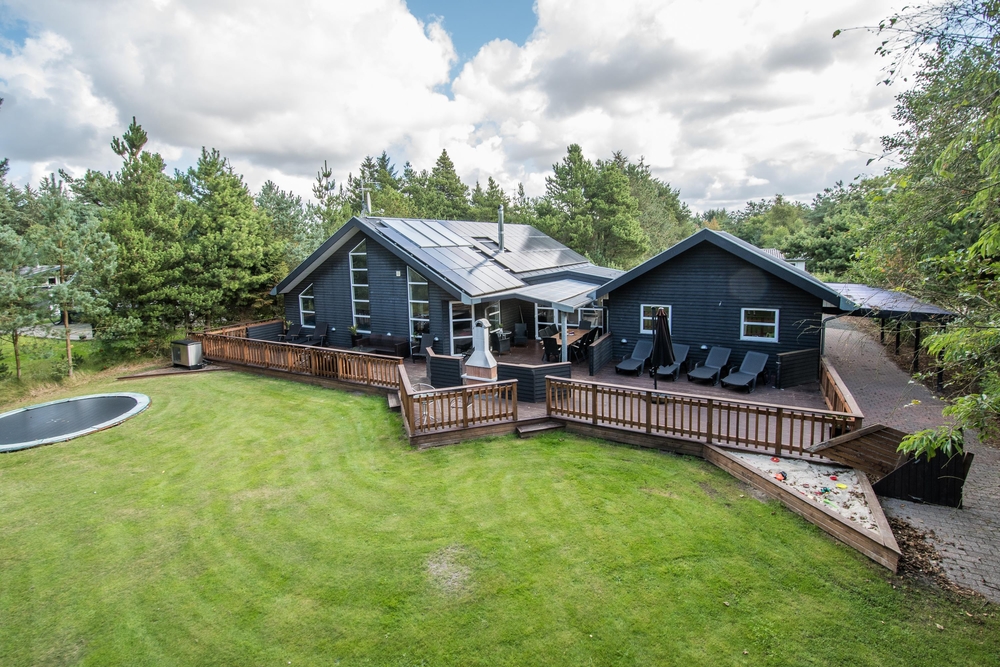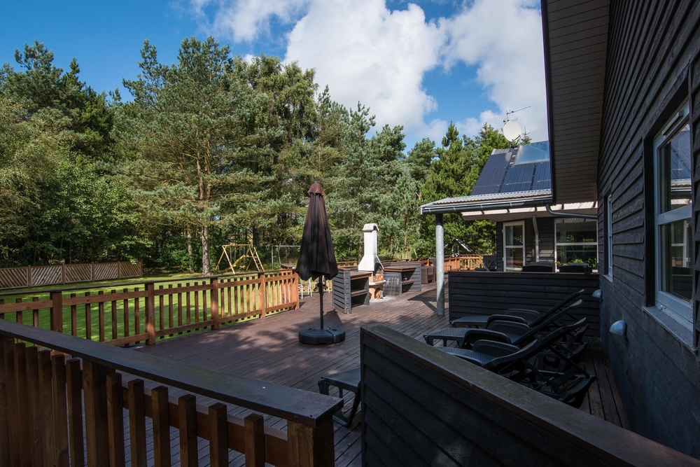 Feriehuset råder over ikke mindre end to flotte terrasser med masser af plads til solbadning og afslapning. For børnene og hunden er der en dejlig græsplæne med flere forskellige legemuligheder, heriblandt fodboldmål og trampolin fra april til oktober.