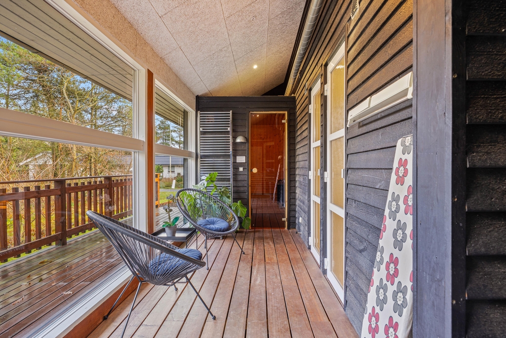 Her er mulighed for en rigtig wellnessferie. For det første er feriehuset indrettet rigtig lækkert og stilrent med højt til loftet, så I vil føle jer godt tilpas helt fra start, og for det andet er der både spabad og sauna, så I virkelig kan holde en ferie i luksus-omgivelser.