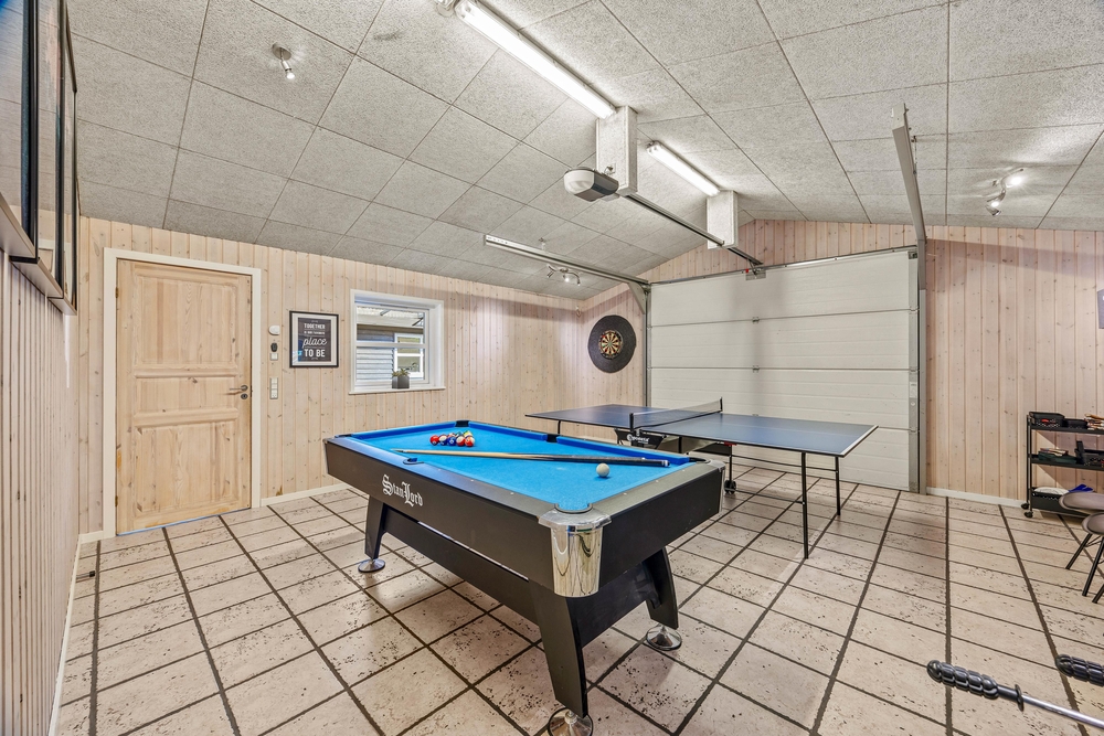 I den opvarmede garage finder I et multirum, hvor børnene kan have det sjovt med bordfodbold og bordtennis, mens I slapper ordentligt af. Og bekymre jer ikke om strømforbruget ? feriehuset er lavenergi-isoleret og opvarmes ved varmepumpe/solvarmeanlæg for minimale strømomkostninger.