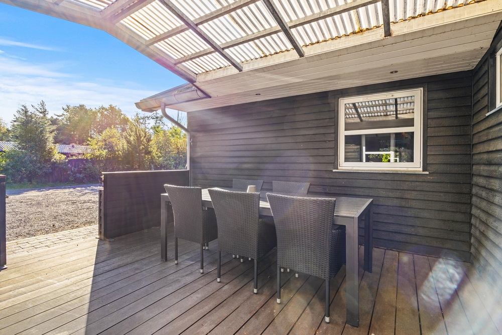 På terrassen står havemøblerne også klar, så I kan nyde en lækker aftensmad ude i solen. Skulle vejret svigte, har I også en overdækket terrasse, så I altid kan sidde i dejlig læ og tørvejr.