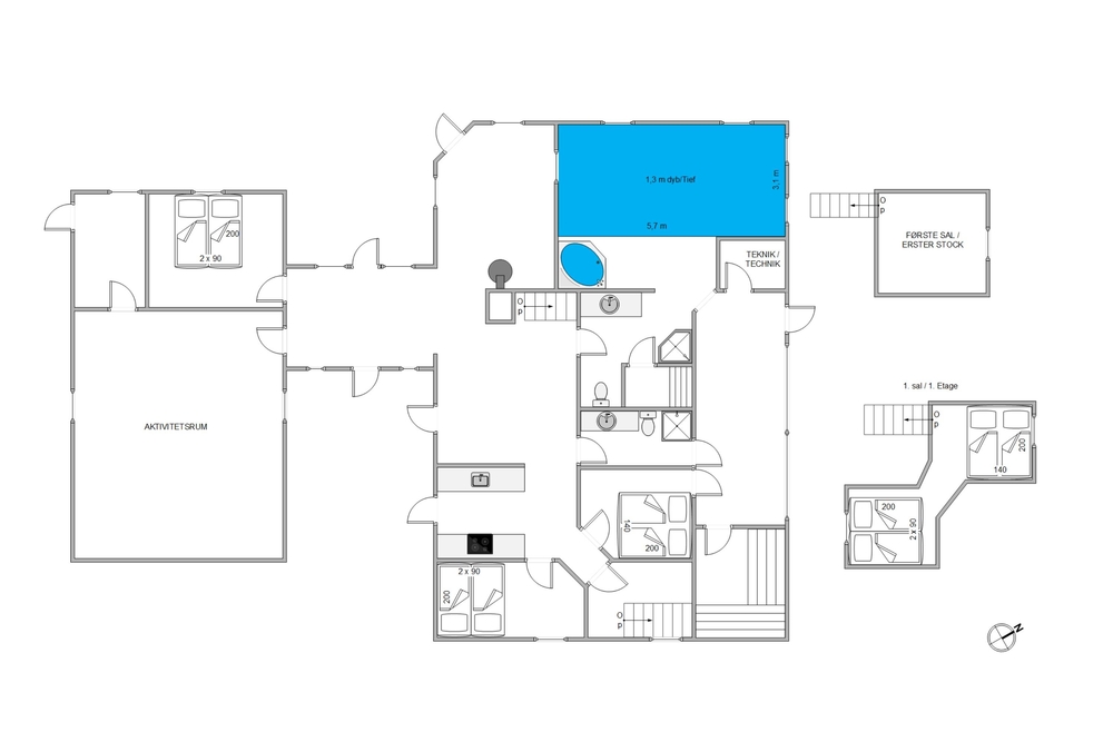Vil I gerne ud og bade, kan I selvfølgelig køre den korte tur til stranden, men i dette feriehus kan I holde badeferie selv i de koldeste måneder. I finder nemlig ikke blot spabad, men også en swimmingpool med en hyggelig stjernehimmel. Så pak roligt badetøjet, lige meget hvornår I holder ferie!