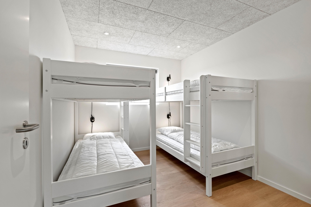 I den rummelige stue kan alle samles til et fælles måltid, og i køkkenet, som er udstyret med moderne indbygningsmaskiner, kan I sammen tilberede jeres måltider i en hyggelig atmosfære. Bagefter kan I slutte dagen af med at spille et brætspil eller to.
