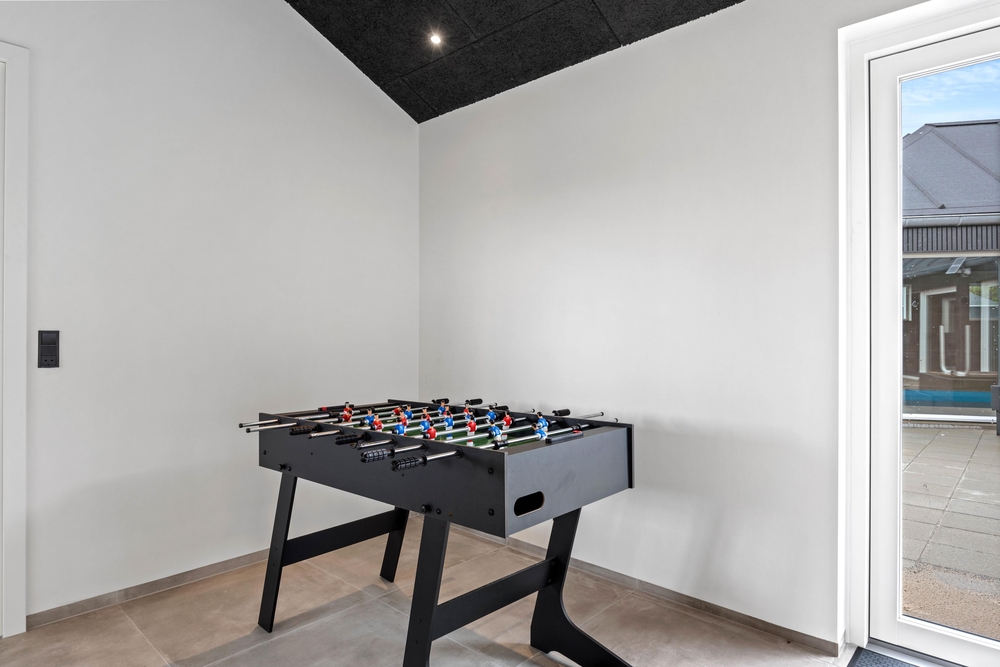 INFO: Dette charmerende poolhus på Rømø byder ikke kun på ren afslapning, men også på usædvanlige fritidsmuligheder: Fra 2026 venter en lille, hyggeligt anlagt privat minigolfbane med egne baner i haven ? ideel til hyggelige stunder under åben himmel. Fra 2026 fuldender en nostalgisk spilleautomat i opholdsrummet det underholdende tilbud for både store og små.