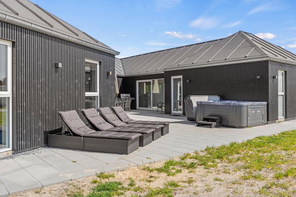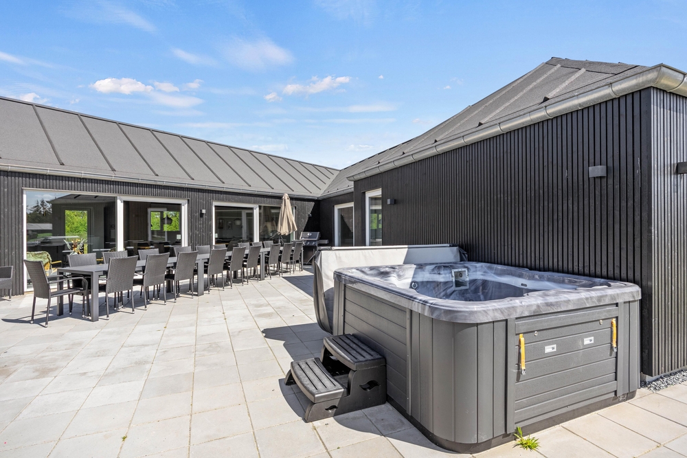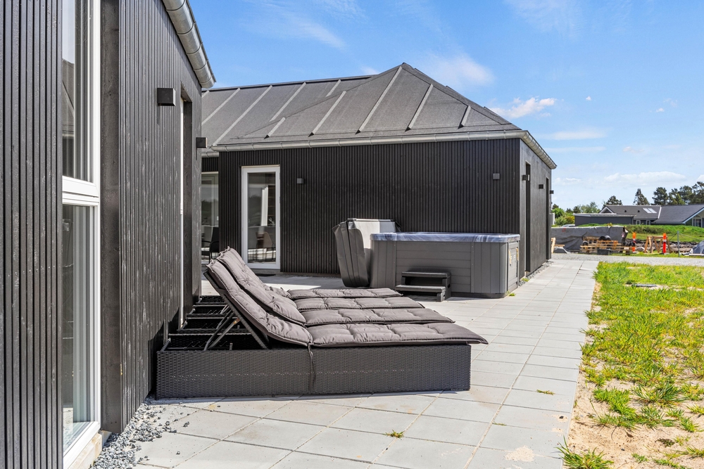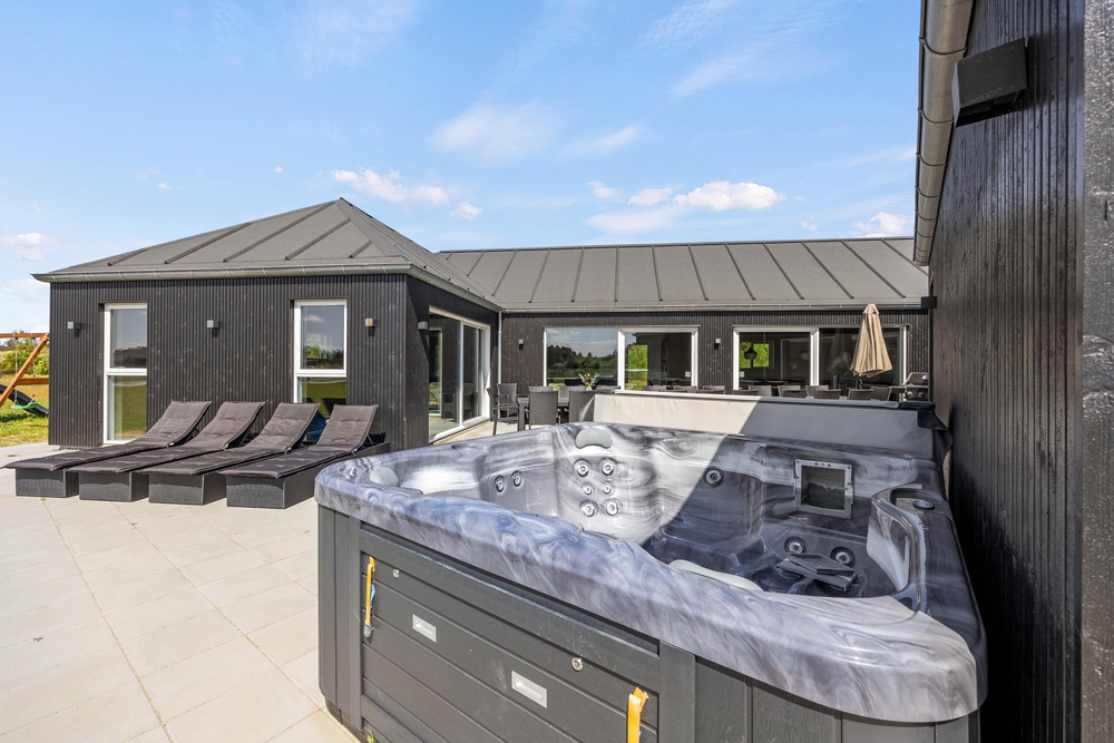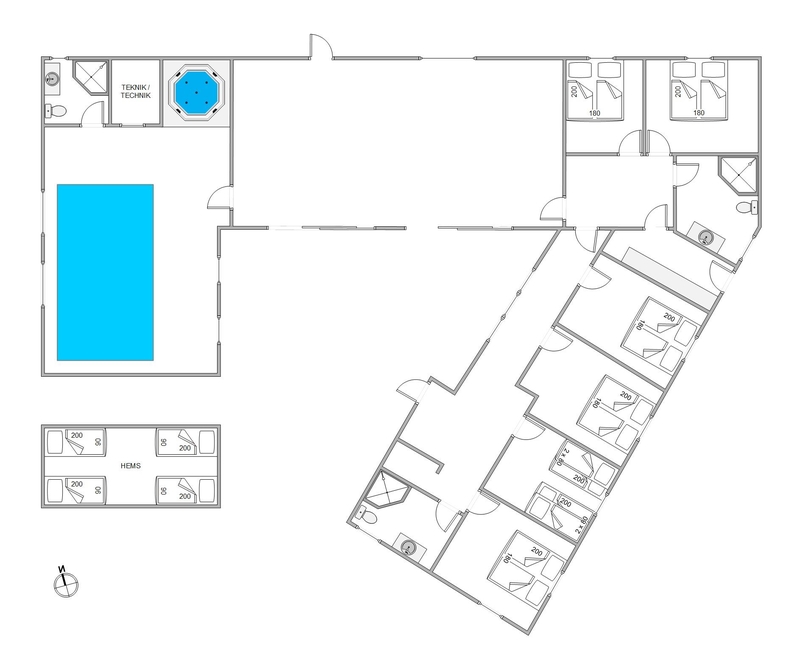 Derudover har sommerhuset 3 badeværelser, alle udstyret med bruseniche og gulvvarme. 2 badeværelser er i soveområdet, det 3. badeværelse er i wellness-området.