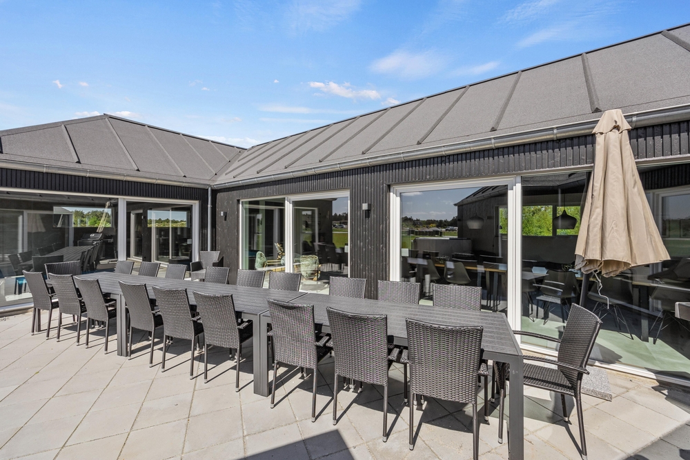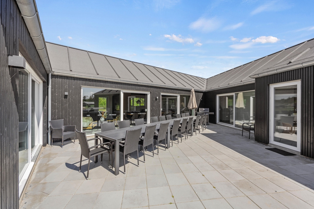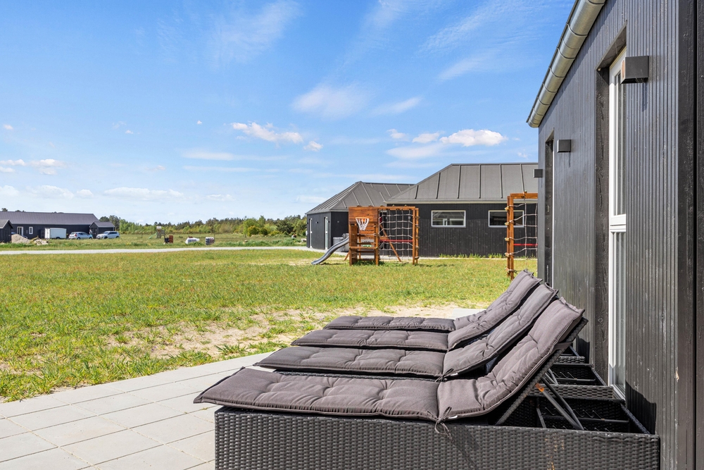 På den fantastiske terrasse med udsigt over naturen har I plads nok til at nyde solen. Bøfferne og pølserne grilles på gasgrillen i dette fantastiske sommerhus, mens i slapper af i havemøblerne.