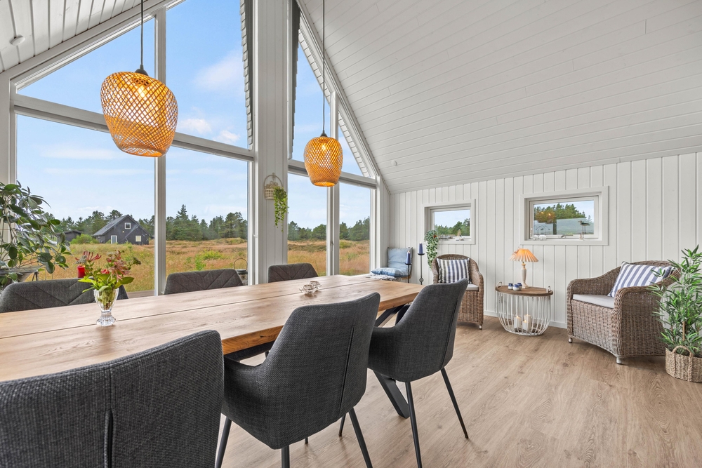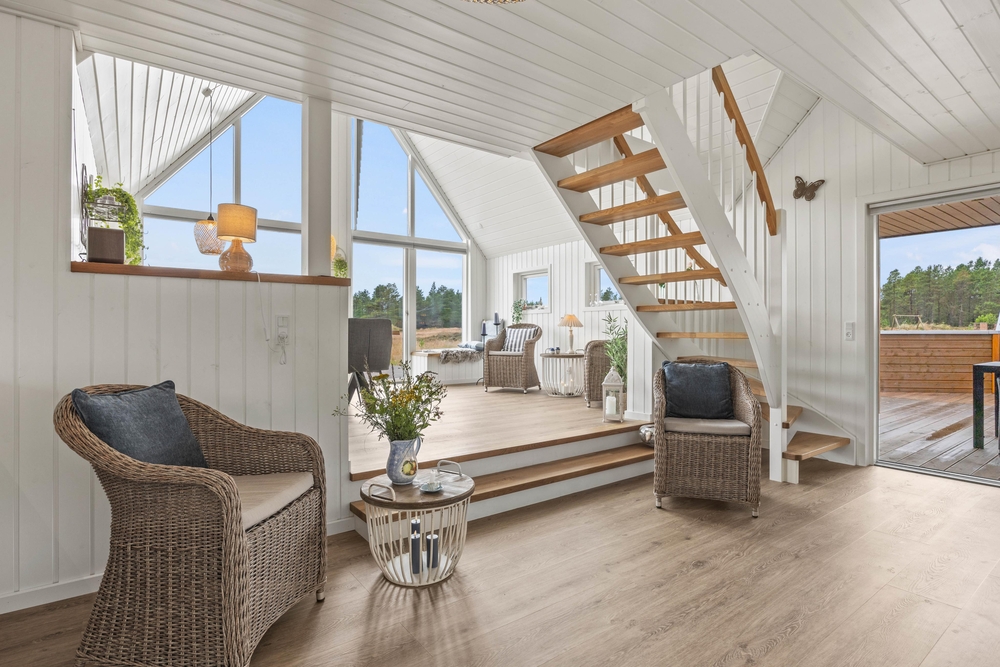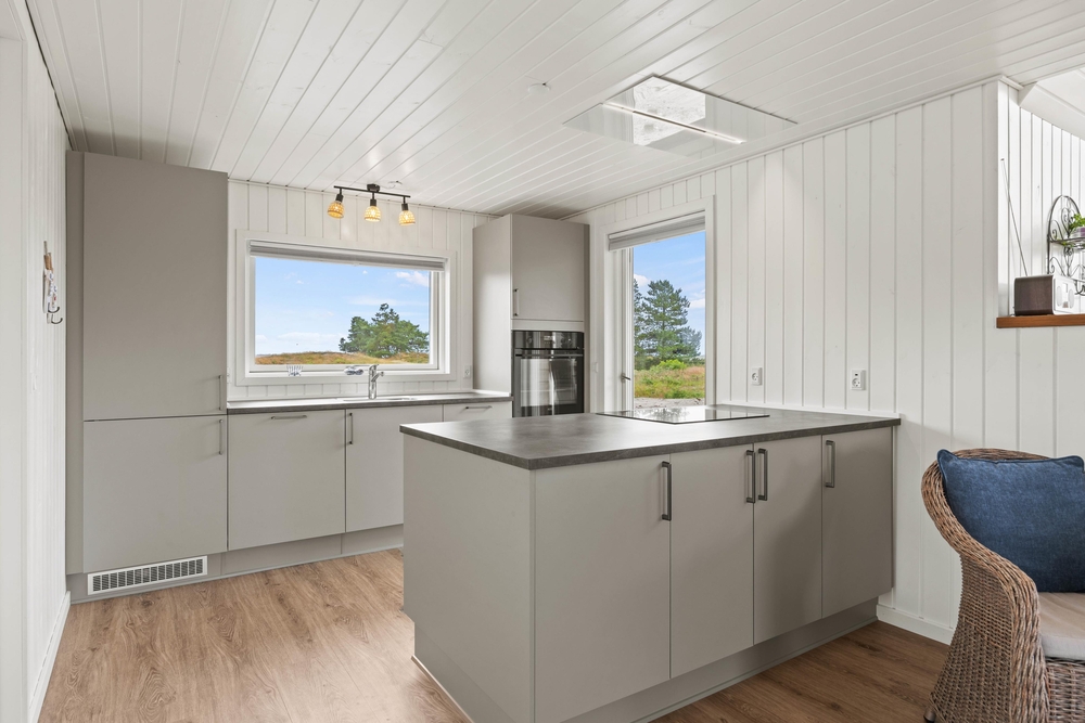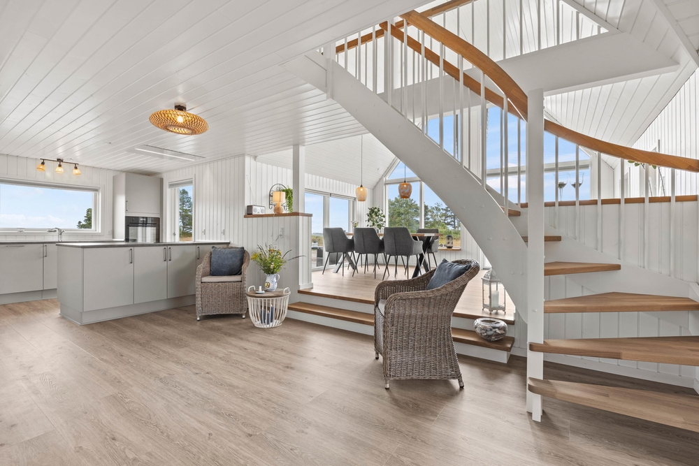 Med et husareal på 133m2 har sommerhuset på Rømø rigelig plads til 6 personer, og er derfor helt perfekt til familieferien. Sommerhuset på Chresten Krommes Vej 14 er indrettet i to-plan og har en indbydende atmosfære. Her er lyst, hyggeligt og de smukke store vinduer inviterer dagslyset indenfor.