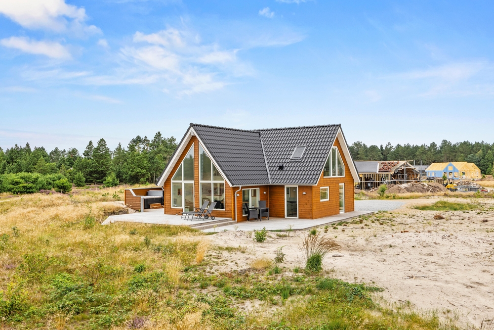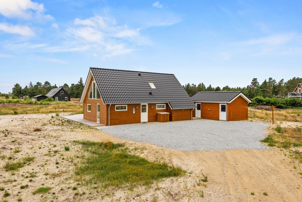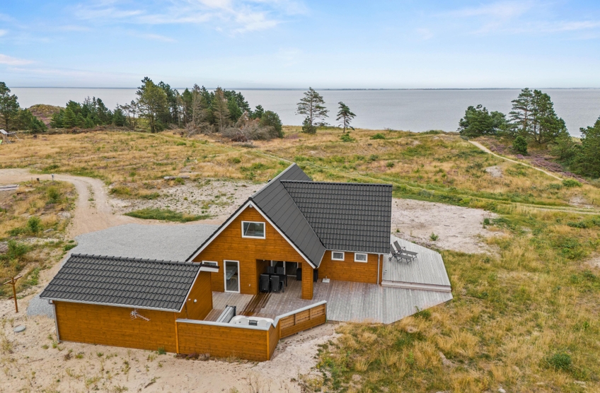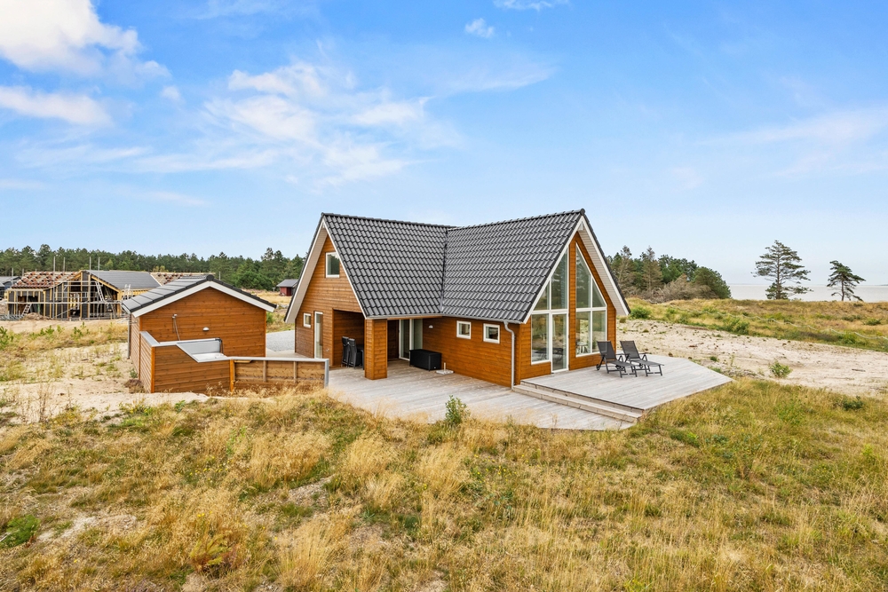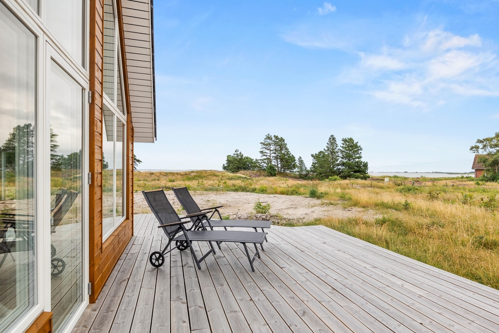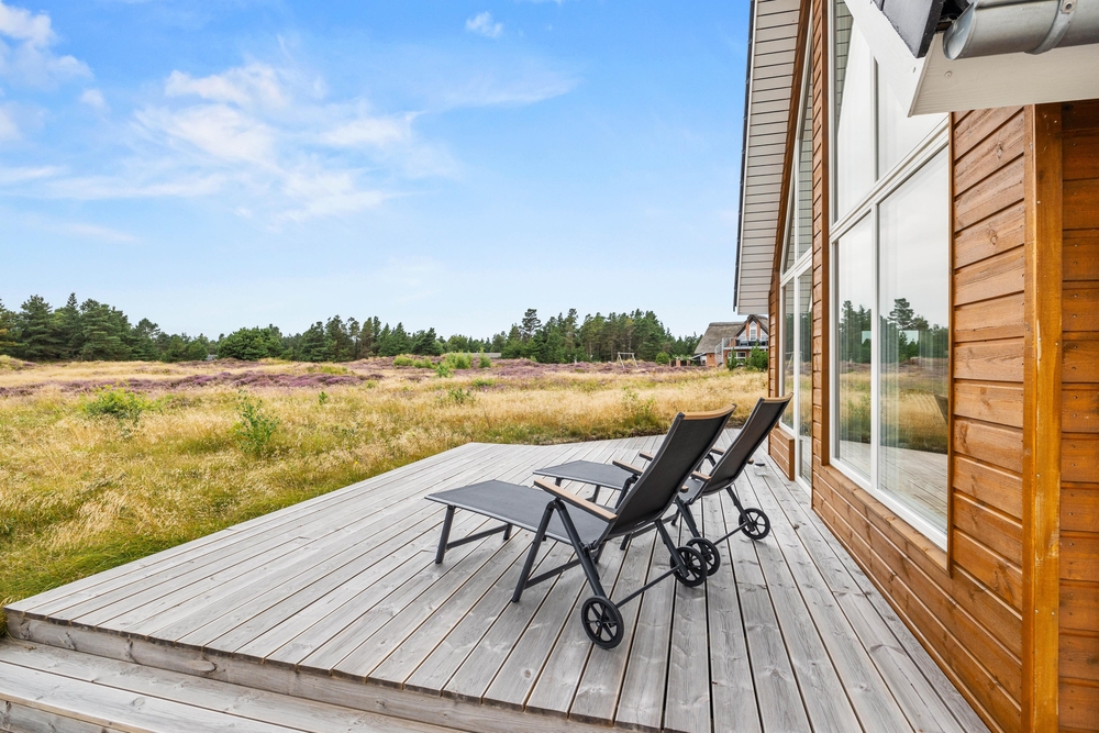I får ikke kun et gennemført luksuriøst indre, men også et helt fantastisk udeområde med en stor, delvist overdækket træterrasse, som danner rammerne om udendørs aktiviteter. Her kan I nyde morgenkaffen eller slappe af i solen efter en dag fyldt med aktiviteter. Havemøbler, liggestole og gasgrillen står klar til jer!