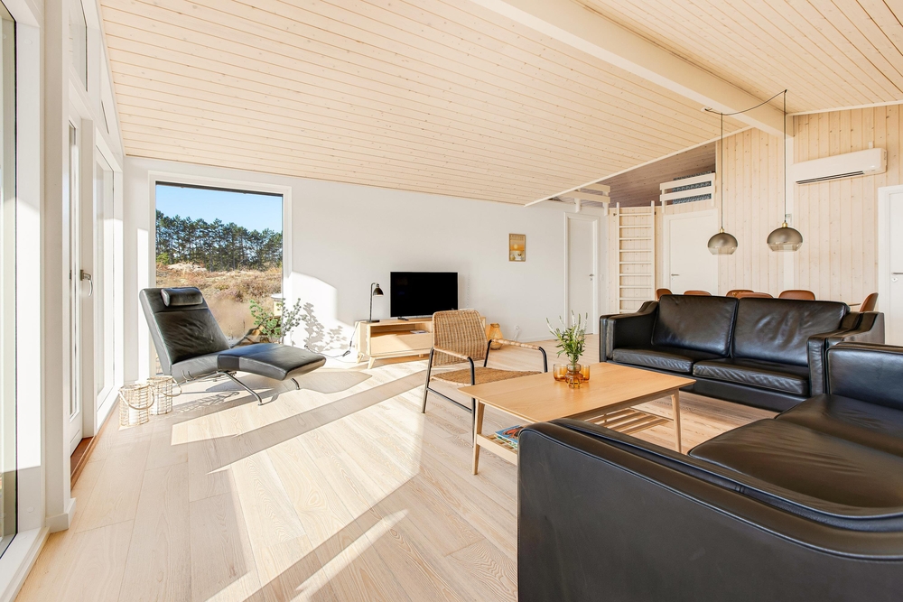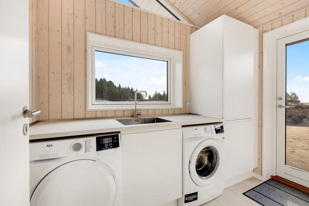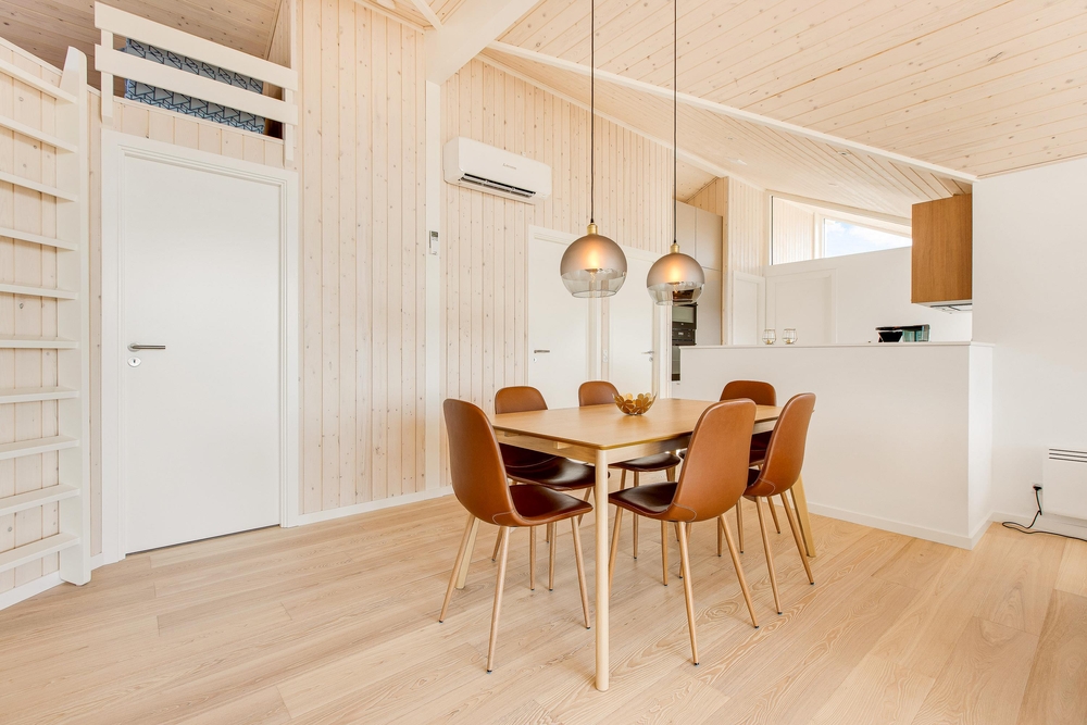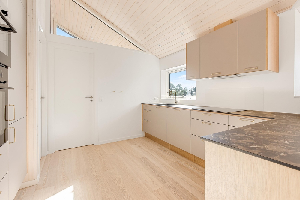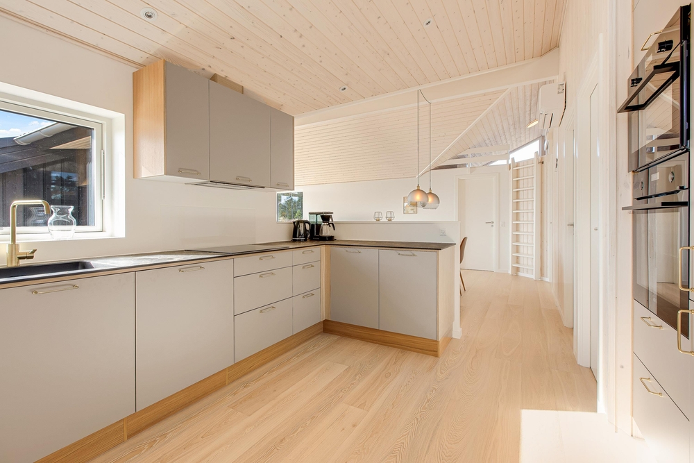 I dette sommerhus kan du tilbringe mange glade timer med hele familien, lave mad sammen, arrangere brætspilsaftener eller en hyggelig filmaften med børnene. I køkkenet vil lystfiskeren ? udover de almindelige faciliteter som induktionskogeplader, opvaskemaskine, ovn og mikroovn ? især blive glad for den separate 60 liters fryser. Der er en energibesparende varmepumpe, samt trægulve i opholds- og soverum.