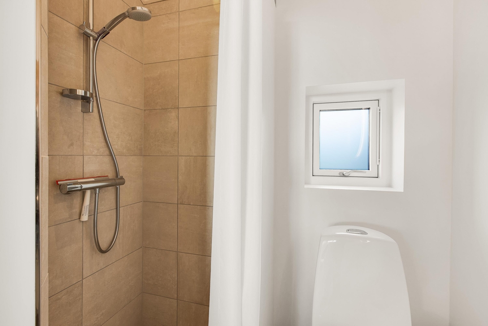 Har du cykel med, er her et redskabsrum, hvor den kan stå natten over.