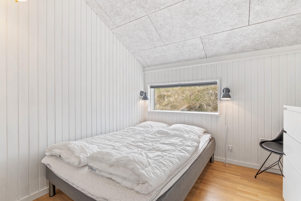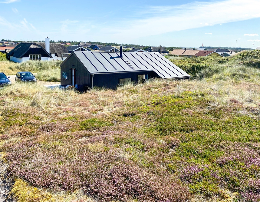 Sommerhuset ligger kun 200 meter fra stranden i Bjerregård. Her kan I nyde en varm sommerdag eller gå en lang tur i det blæsende efterårsvejr ? Vesterhavet er et besøg værd hele året rundt.