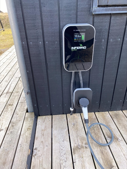 Lademuligheden for el bilen er en ladestander, medbring eget kabel (type 2 stik).