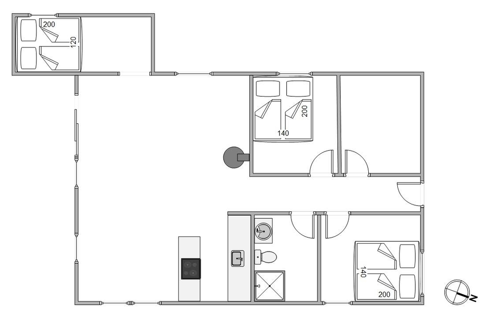 Her er et moderne badeværelse med gulvvarme og 2 gode soveværelser med dobbeltsenge. De sidste sovepladser findes i alkoven ved opholdsrummet.