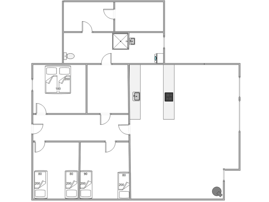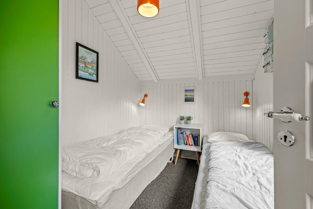 Til aften kan I fordele jer på de 3 værelser til en god nats søvn. Det ene værelse er indrettet med en dobbeltseng, mens der på de sidste værelser er enkeltsenge.