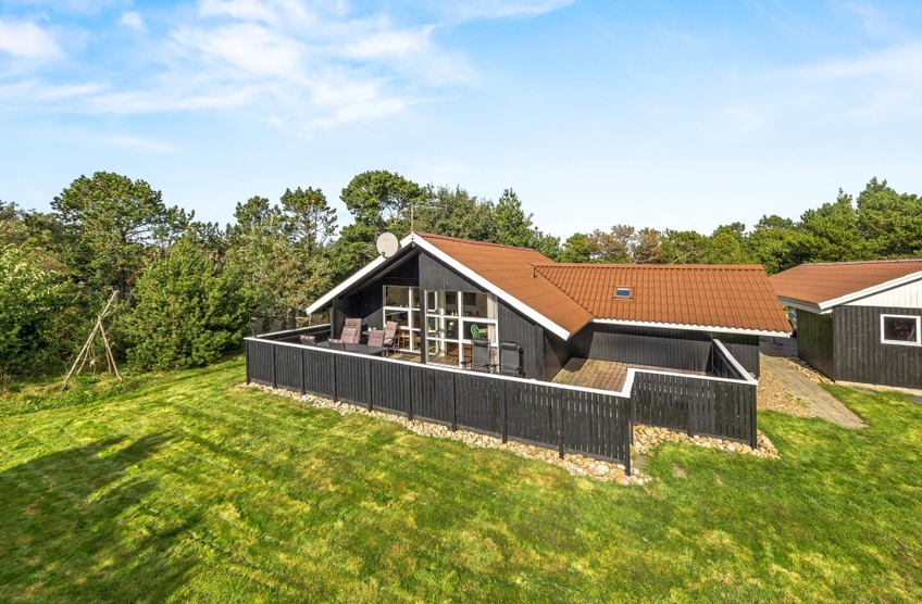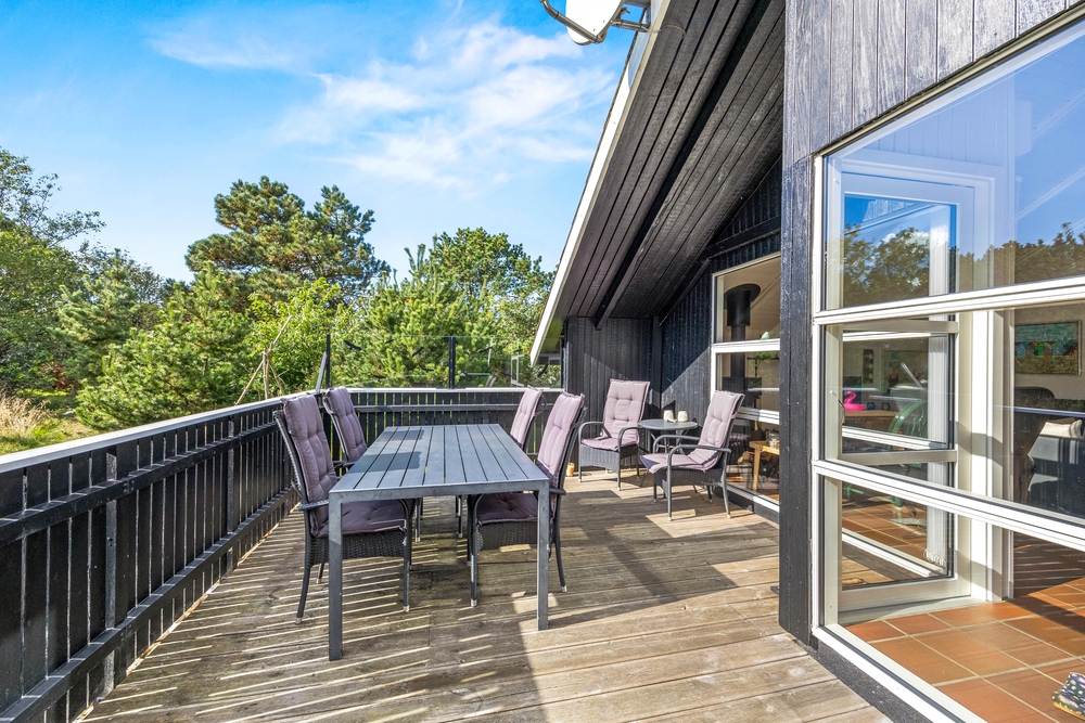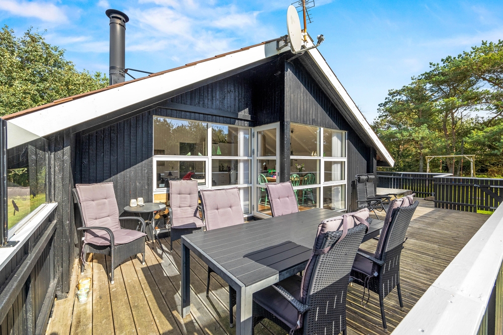 Fra sommerhusets stue har I udgang til den lukkede terrasse, hvor I helt sikkert vil være at finde på en lun sommerdag. Her står havemøbler, liggestole og grill klar til jer. Da terrassen er lukket, kan I lade hunden og familiens yngste gå frit rundt uden bekymringer om, at de tager på udflugt alene.