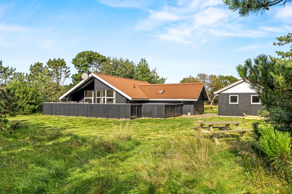 Sommerhuset er beliggende 1,1 kilometer fra stranden i Vejers, hvor den kilometerlange sandstrand indbyder til gode gåture med fødderne i vandkanten. Her kan I også samle rav og muslingeskaller, flyve med drage eller bygge store sandslotte. Mulighederne er mange her, og på dele er stranden er det endda tilladt at køre med bilen.